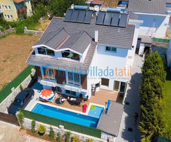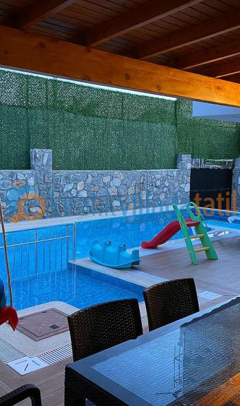 Villamızın havuz ve havuz etrafı kapatılarak korunaklı hale getirilmiştir bu sayede havuz terası dış gözlerlerden uzak tutulmuştur. Villamızda keyifli vakit geçirmeniz için masa tenisi ve spor ekipmanları bulunmaktadır. Kış aylarında da kapalı havuzu ile tatil imkanı sunmaktadır. 1 Kasım – 1 Mayıs Tarihleri arasında kullanmak isteyen müşterilerimizden ek günlük 800 tl ( 3-7 GECE ) ücret talep edilmektedir.