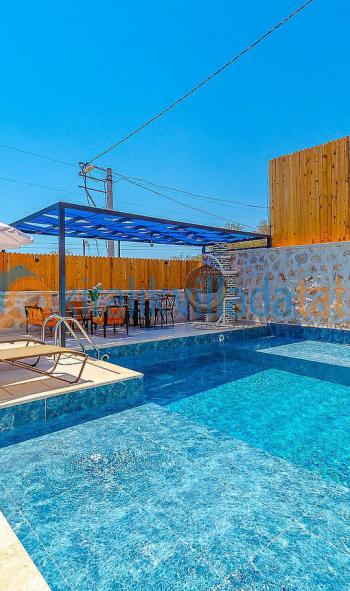Tamamen ahşap ve taş konsept olarak inşaa eddilen villamız geniş havuz trası ile korunaklı bir ortamda da dış gözlerden uzak bir tatil imkanı sunmaktadır.