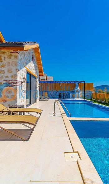 Tamamen ahşap ve taş konsept olarak inşaa eddilen villamız geniş havuz terası etrafı dışarıdan görülmesi engelenerek muhafazakar hale getirilerek dış gözlerden uzak bir tatil imkanı sunmaktadır.