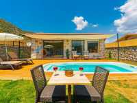 Tamamen taş ve ahşap konseptiyle inşa edilen villamızın havuz terası, taş duvarlarla kapatılarak muhafazakar bir hale getirilmiş ve gözlerden uzak, doğa ile iç içe huzurlu bir tatil imkanı sunmaktadır.