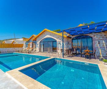 Tamamen ahşap ve taş konsept olarak inşaa eddilen villamız geniş havuz trası ile korunaklı bir ortamda da dış gözlerden uzak bir tatail imkanı sunmaktadır.