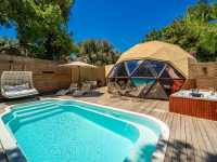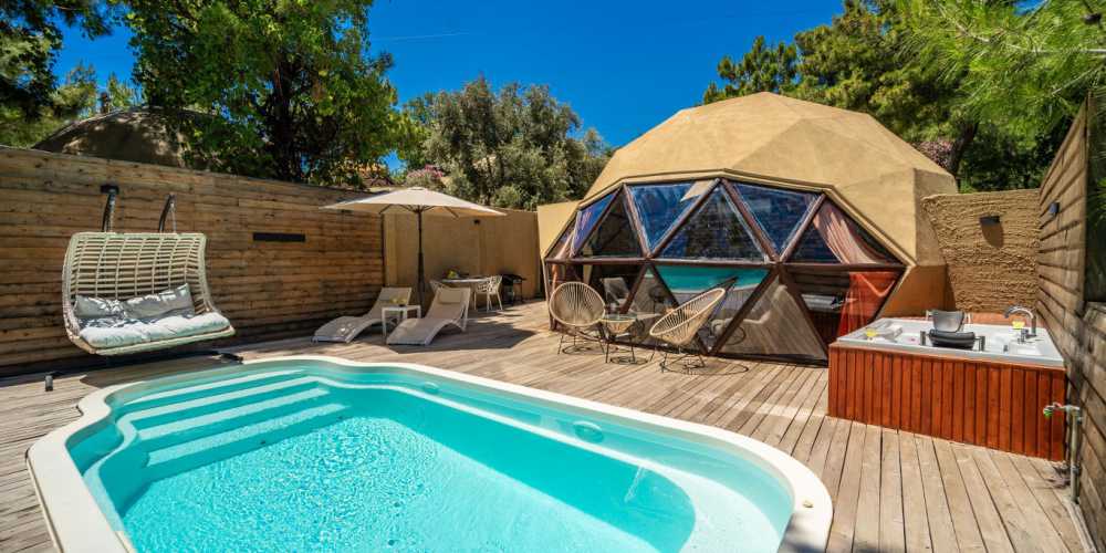 Her villanın kendine ait havuz terası bulunması konseptin en güçlü tarafıdır. Türkiyede ilk kez bu ölçekte üretilen kubbe yapılar 7 metre çap, 4.30 metre kubbe yüksekliği ve 38 m ahşap mimarisiyle hem görsel olarak etkileyici hemde konaklama olarak son derece konforlu bir ortam oluşturur. yapı tasarımında güvenlik ve iklim faktörleri dikkate alınmış yılın farklı dönemlerinde de rahat bir konaklama hedeflenmiştir.
