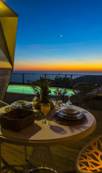 Dış mekanında, her villamızda basamaklı girişli özel bir yüzme havuzu (6 mt x 3 mt, derinlik 1,35 mt) ve üç villamızda manzaraya karşı keyif yapabileceğiniz geniş ebat çift kişilik sıcak su jakuzisi bulunmaktadır. İki adet şezlong, şemsiye, salıncak, geniş yemek masası ve oturma grubu standart olarak mevcuttur. Villamızın havuz etrafı pergule ve çitlerle kapatılarak yüksek oranda korunaklı hale getirilmiştir.