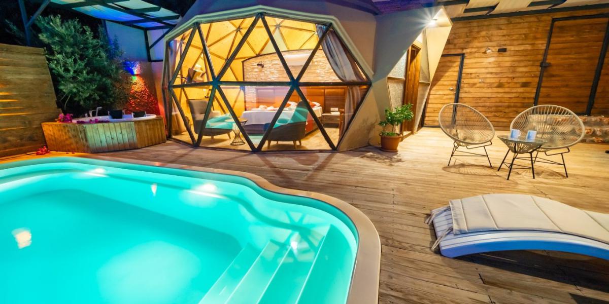 Aynı iç konsepti paylaşan, deniz manzaralı ve özel havuzlu 3 adet kubbe villadan oluşan bu yapı; Türkiye’de ilk kez 7 metre çapında, 4,30 metre kubbe yüksekliğinde ve 38 m² ahşap yapı olarak tasarlanmıştır. Konfor ve güvenlik ön planda tutularak hayata geçirilen bu konsept, Kalkan balayı villa ve deniz manzaralı villa arayışında olan çiftler için benzersiz bir alternatif sunar. Aynı konseptte, İslamlar etabında yer alan ve doğa manzarasına sahip villalar da bulunmaktadır.