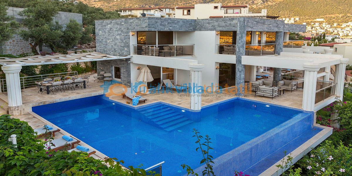 Villamız kalkanın ortaalan mevkiin bulunup 12 kişilik kapasiteye sahiptir .Villamızda 6 yatakodası bulunmaktadır ve yatak odalrının ikisinde jakuzi bulunmaktadır tüm yatakodalırnda banyo wc vardır. Villamızda en üst teras katında bir adet jakuzi vardır.Villamızın ayrıca spor yapabileceğiniz spor aletlerinin olduğu bir mekanıda vardır. Villamız kalkan merkeze 10 dakika uzakltıktadır.Villamız çok lüks dizayn edilmiştir.Muhafazakar aillelerimiz için uygun değildir.Dışarıdan görülebilme ihitmali vardır havuz içinde.Villamızda ihitiyacınız olan tüm mobilya mutfak araç gereçleri ütü saç kurutma makinesine kadar mevcuttur.Villamız muhteşem deniz manzarası ile rahat konforlu bir tatil geçirmek isteyen tüm konuklarımız için uygundur.