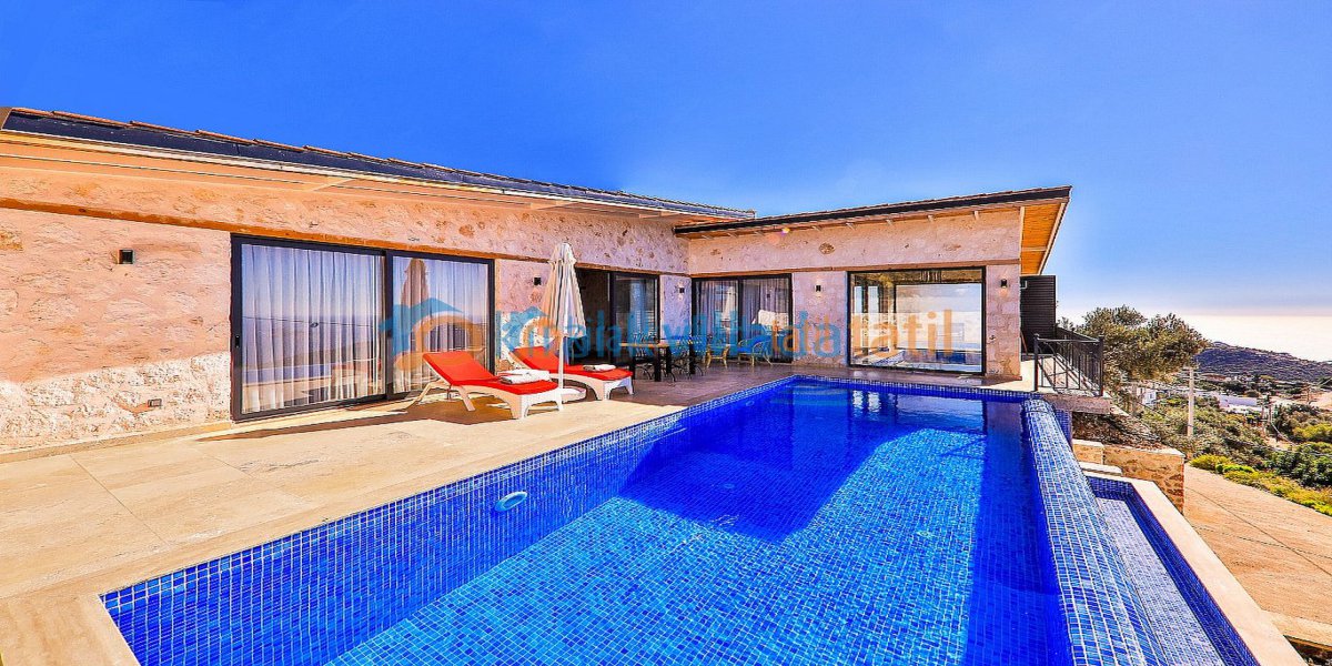Konumu itibarıyla Kalkan koyuna hâkim olan villa, Akdeniz’in eşsiz mavisini her odadan izleme imkânı sağlar. Sabahları deniz manzarasıyla uyanmak isteyen misafirler için oldukça etkileyici bir atmosfere sahiptir. Şehir merkezine yaklaşık 5 km mesafede bulunan villanın havuz terası, demir pergola sistemiyle çevrilmiş olup dışarıdan görünmeyecek şekilde planlanmıştır. Bu özelliğiyle mahremiyet beklentisi olan misafirler için korunaklı villa ve muhafazakar villa konseptine uygundur.