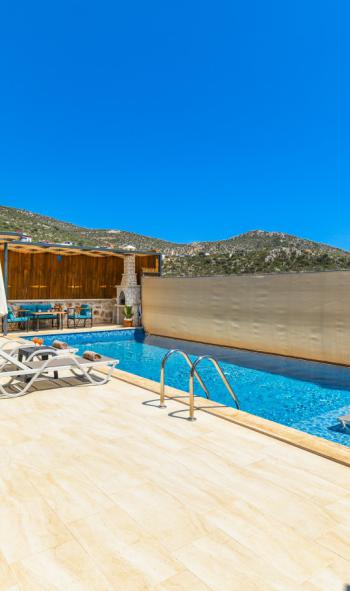 Havuz etrafı tamamen kapatılan villamız balayı çiftlerimiz ve muhafazakar ailelerimiz için ideal bir seçenektir.