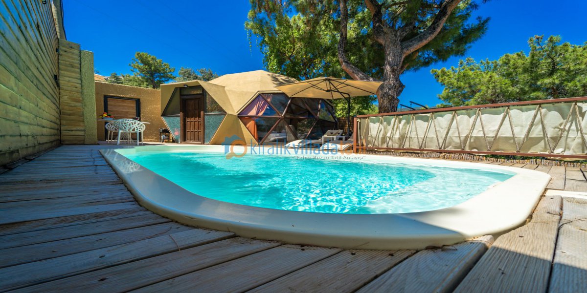 Bu konsepti farklı kılan en önemli detay, glamping kültürünü yalnızca çadır hissiyle değil; gerçek anlamda mimari ve konforla birleştirmesidir. Kubbe villalarımız Türkiye’de ilk kez 7 metre çapında, 4.30 metre kubbe yüksekliğinde ve 38 m² ahşap yapıda üretilmiştir. Doğanın içinde yer almasına rağmen güvenlik ve iklim kaygısı olmadan konforlu bir konaklama sağlayacak şekilde planlanmıştır. Üstelik her villanın kendine ait ayrı havuz terası olması, tatilinizi tamamen size özel kılar.