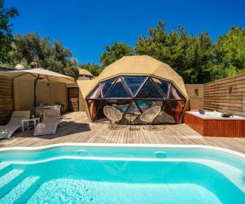 Her biri ayrı bir havuz terasına sahip olan kubbe tipi villalarımız, Türkiye'de ilk defa 7 metre çapında, 4.30 metre kubbe yüksekliğinde ve 38 metrekarelik AHŞAP yapıda üretilmiştir. Binalarımız, konforlu bir konaklama sunmak amacıyla güvenlik ve iklim endişelerini göz önünde bulundurarak tasarlanmıştır.