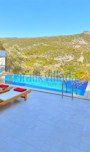 Havuz terası etrafı perde sistemi ile kapatılarak korunaklı hale getirilmiştir. Geniz havuz ve havuz terası ile rahat bir tatil imkanı sunmaktadır. Baylı çiftlerinin de beğenerek tatil yaptığı villamızda muhteşem bir tatil sizleri beklemektedir.