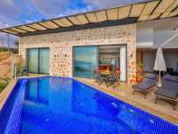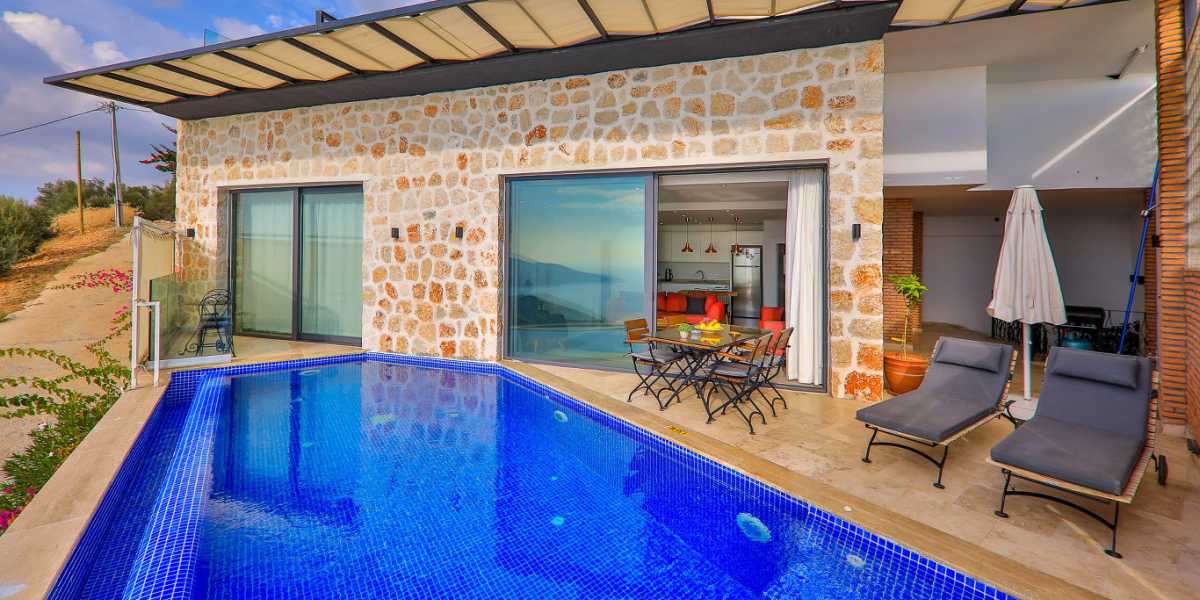 Kalkan merkeze kısa sürüş mesafesinde bulunan konumu, çiftlere hem sakin bir atmosfer hem de restoranlara, plajlara ve marketlere kolay ulaşım imkânı sağlar. Villada tüm ev ve mutfak gereçleri eksiksiz şekilde yer aldığı için konaklama süreciniz boyunca lüks ve rahatlık bir arada sunulur.
