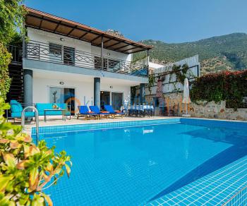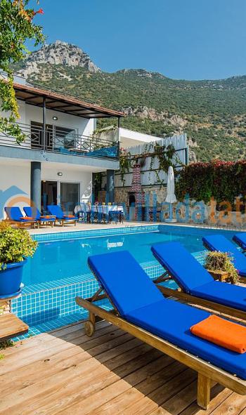 Bu ilan ait Detaylı açıklama ve bilinmesi gereken detaylarKalkan Akbel mevkiinde bulunan bu tatil villası 7 yatak odası ile 14 kişilik kapasiteye sahiptir. İki ayrı bağımsız girişe sahip olan villamızda 2 adet oturma odası ve 2 adet mutfak mevcuttur. 1 kattaki balkondan havuz katına demir basamaklı ayrı bir iniş – çıkış vardır. 3 yatak odası süit (banyolu) olup diğer yatak odaları ortak banyo-wc kullanmaktadır. Villamızın terasında özel bir güneşlenme alanı mevcuttur.