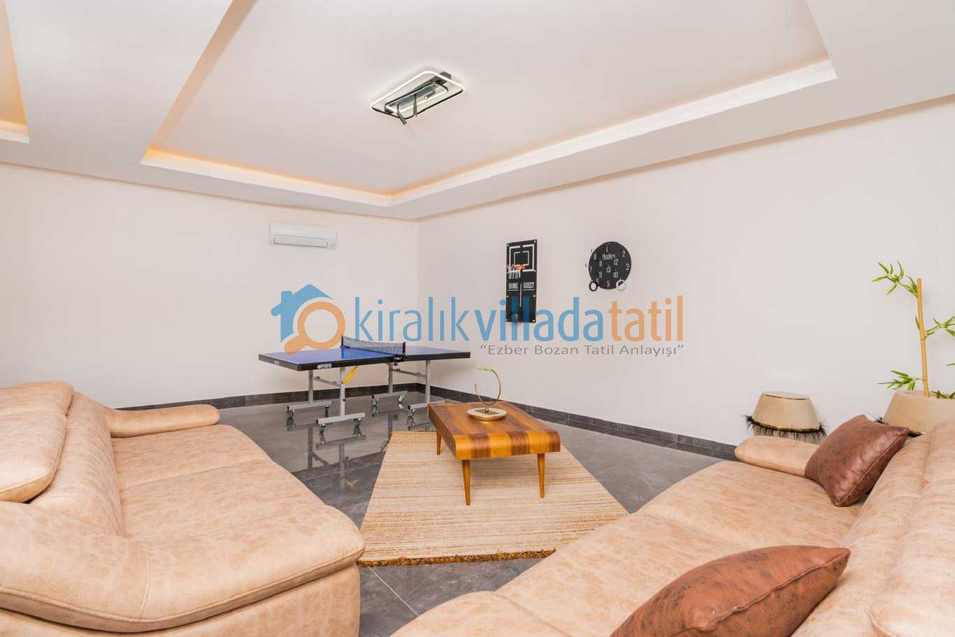 Villanın dış alanı da en az iç mekân kadar keyifli bir kullanım sunar. Özel yüzme havuzu, geniş havuz terası, mangal köşesi ve salıncak alanı ile gün boyu açık havada vakit geçirebilir, sevdiklerinizle birlikte keyifli anlar yaşayabilirsiniz. Hem dinlenmek hem de sosyalleşmek için ideal bir ortam sunan bu alanlar, tatilinizi daha verimli hale getirir.
