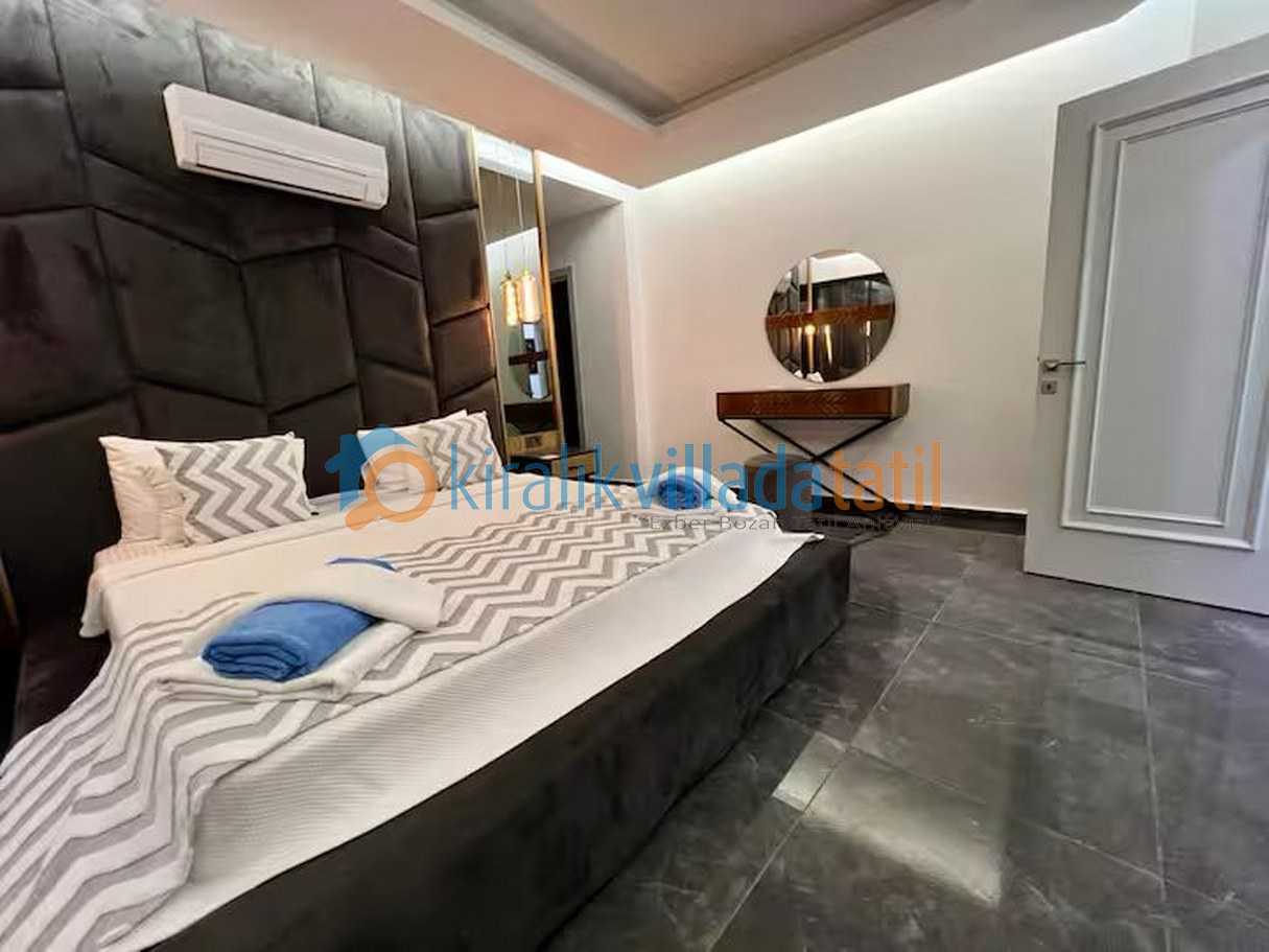 Ferah ve kullanışlı iç mekân tasarımında modern çizgiler ön planda tutulmuş; konforlu oturma alanları, tam donanımlı mutfak ve özenle hazırlanmış yatak odaları ile tatil süreciniz boyunca ihtiyaç duyabileceğiniz tüm detaylar düşünülmüştür Yatak odalarından birinde yer alan jakuzi günün yorgunluğunu atabileceğiniz ayrıcalıklı bir alan sunarken, konaklamaya ekstra bir konfor katmaktadır.