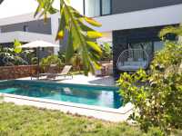 Bu eşsiz konum, sıcak havalarda dahi serin kalmanızı sağlar ve konaklamanızı çok daha konforlu hâle getirir. Güne Akdeniz’in tertemiz havasıyla uyanarak başlayabilir, gün içinde sahilde serin suların ve güneşin tadını çıkarabilir, akşamları ise bahçenizde barbekü yaparak gün batımı eşliğinde unutulmaz anlar yaşayabilirsiniz. Modern Çizgilerle Donatılmış Geniş ve Kullanışlı İç Mekânlar İki katlı olarak tasarlanan villamız, ferah iç hacmi ve fonksiyonel yerleşim düzeniyle konuklarına evlerindeki rahatı aratmayan bir ortam sunar. Modern dekorasyonlu salon, tam donanımlı mutfak ve özenle hazırlanan yatak odalarıyla hem şıklık hem de konfor bir aradadır. Tüm yatak odalarında özel banyolar yer alırken, her oda klima sistemiyle donatılmıştır. Ayrıca yüksek hızlı internet bağlantısı, geniş ekran televizyon, 24 saat sıcak su hizmeti ve kaliteli havlu-çarşaf takımları gibi pek çok detay da eksiksiz olarak sağlanmıştır.