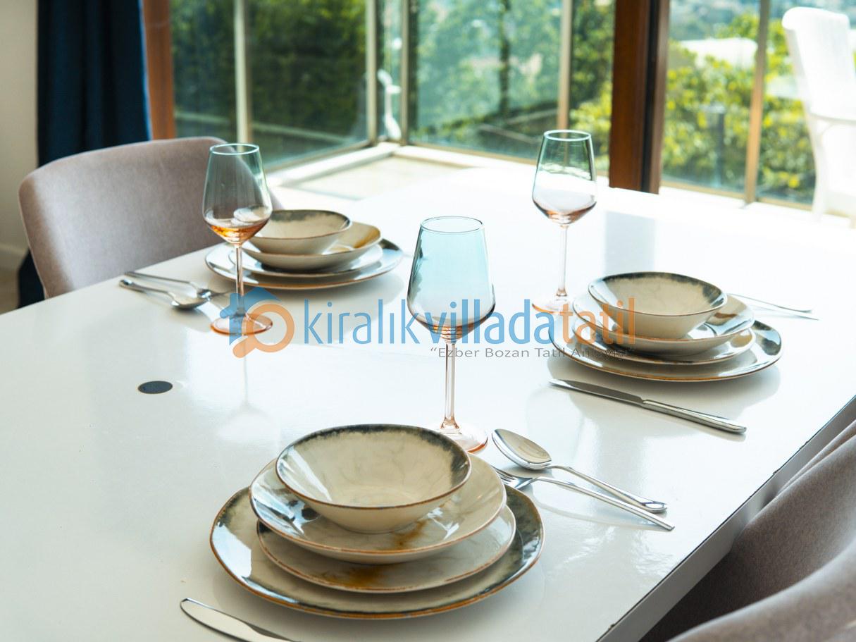 Toplam 7 kişilik kapasiteye sahip olan villada, tam donanımlı mutfak, klima, Wi-Fi, barbekü alanı ve özel otopark gibi tüm olanaklar düşünülmüştür.