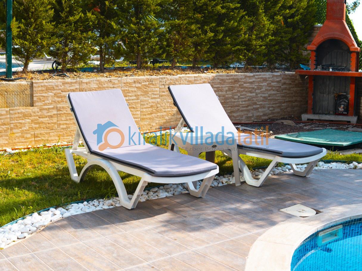 Gün boyunca havuz başında doğanın huzur veren manzarasında dinlenebilir, akşamları bahçedeki barbekü alanında sevdiklerinizle keyifli anlar paylaşabilirsiniz.