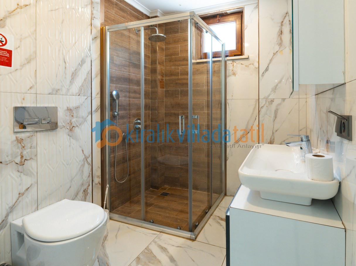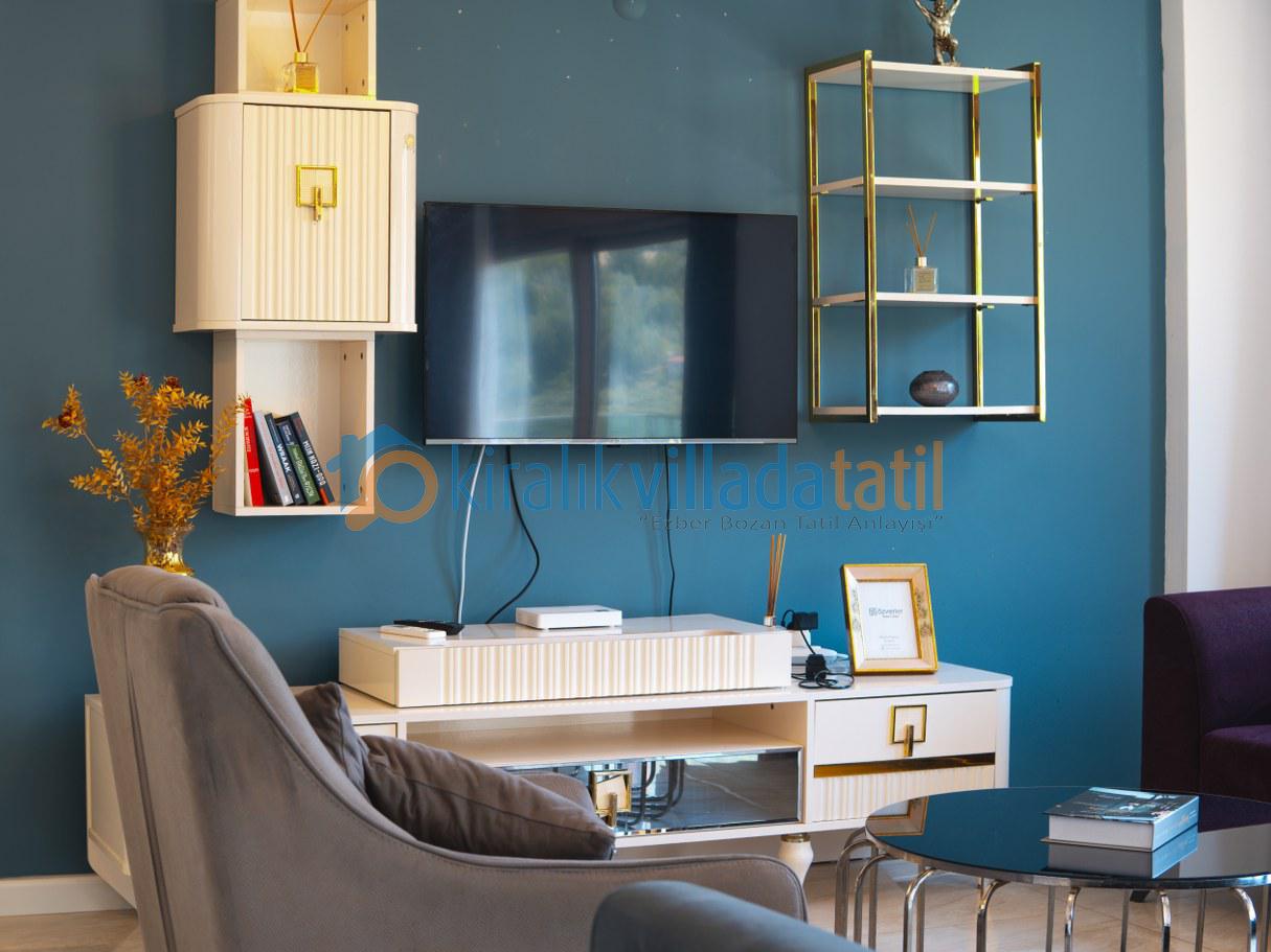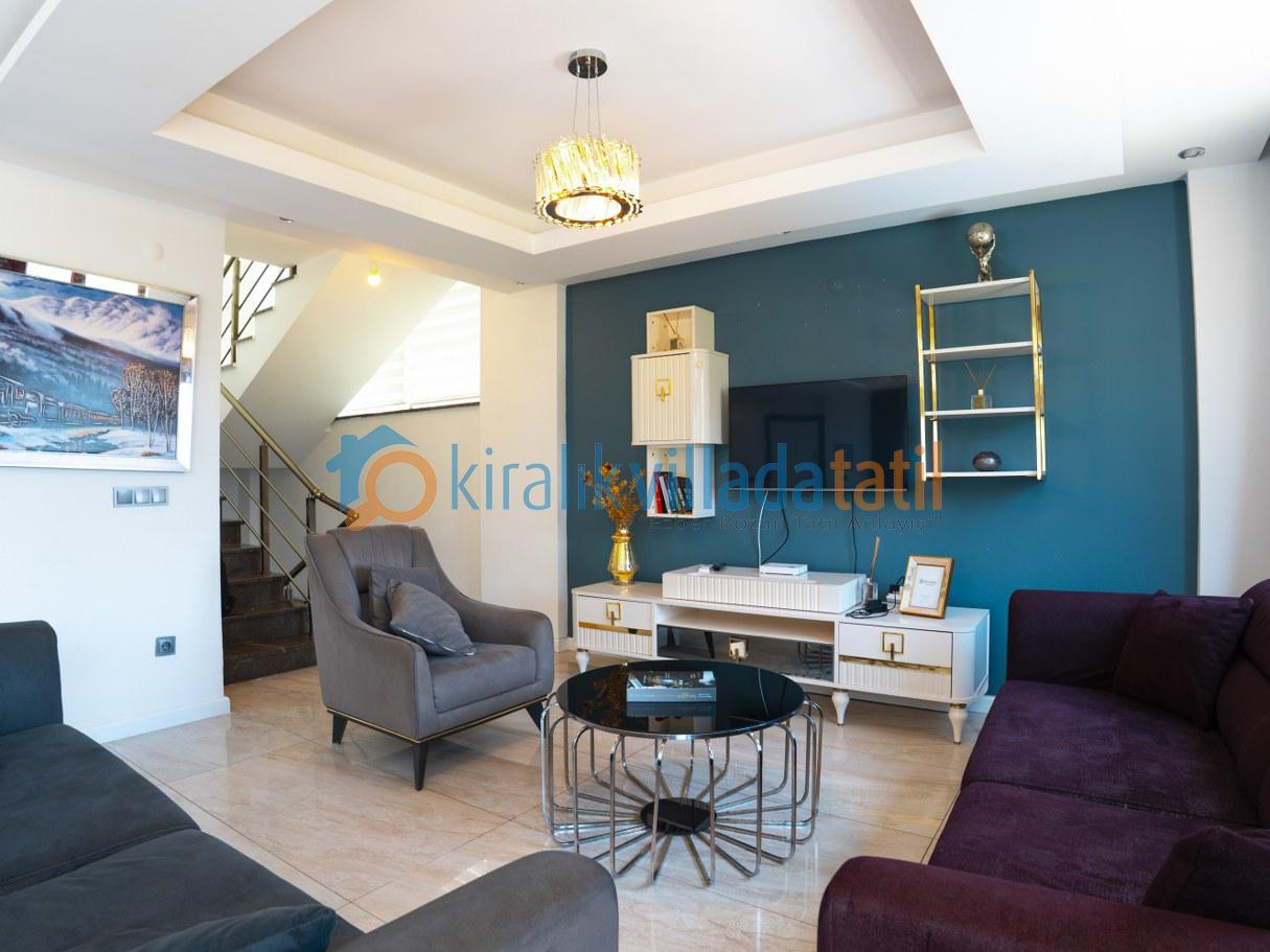 Toplam 7 kişilik kapasiteye sahip olup, tam donanımlı mutfak, klima, Wi-Fi, barbekü alanı ve özel otopark gibi tüm olanaklara sahiptir.