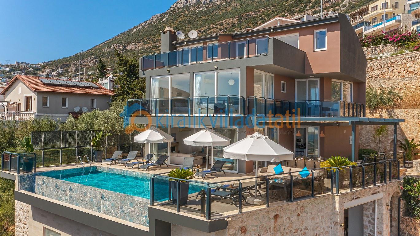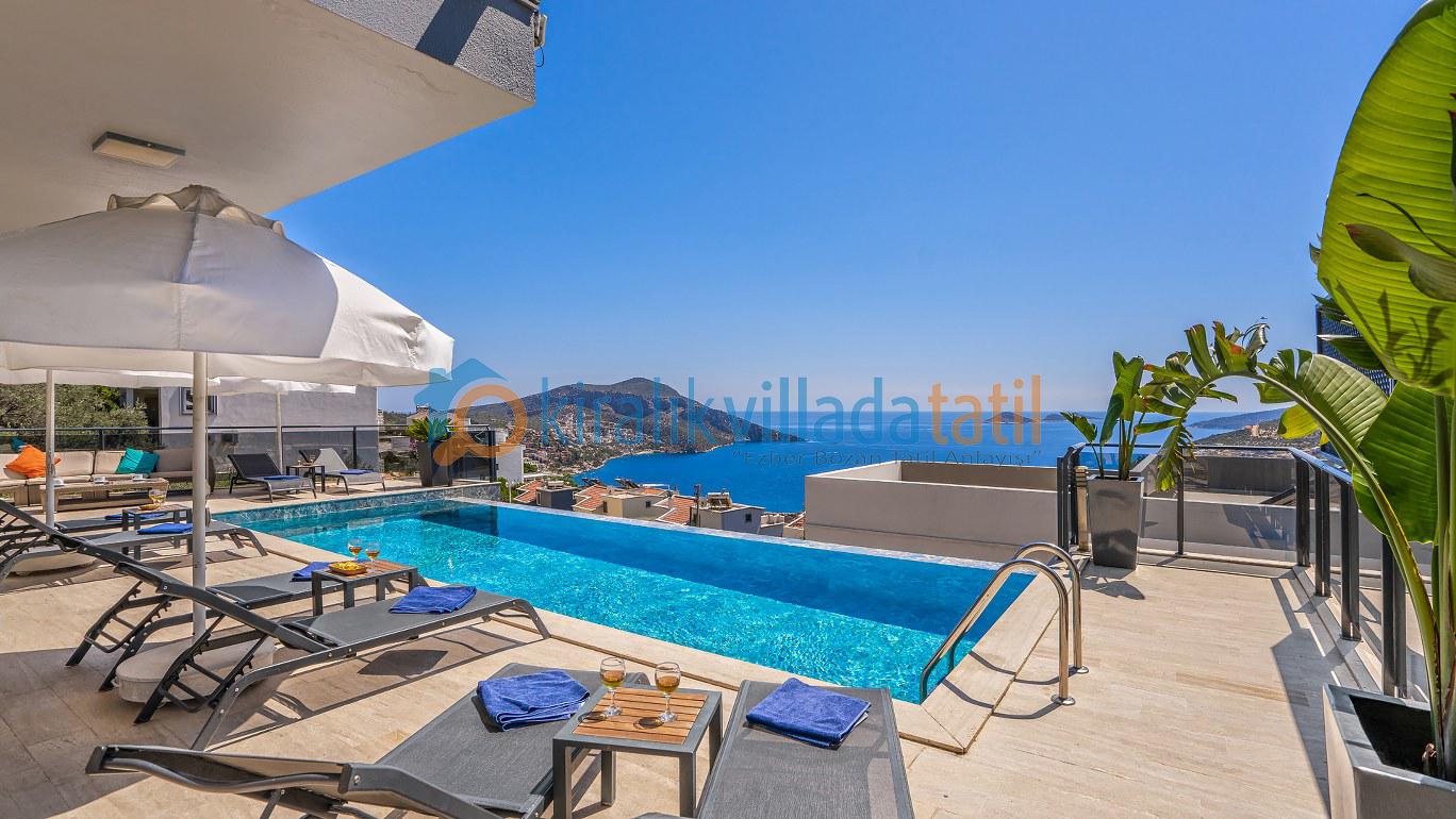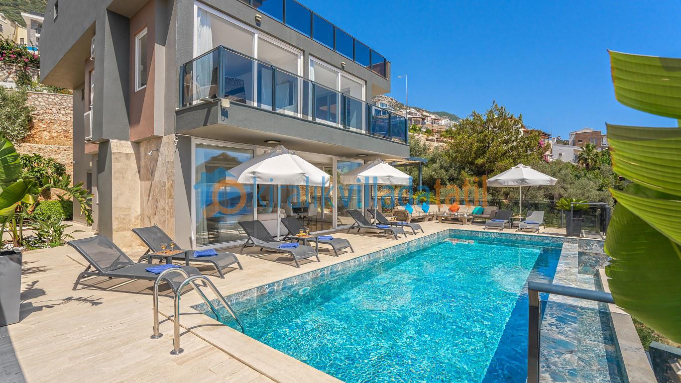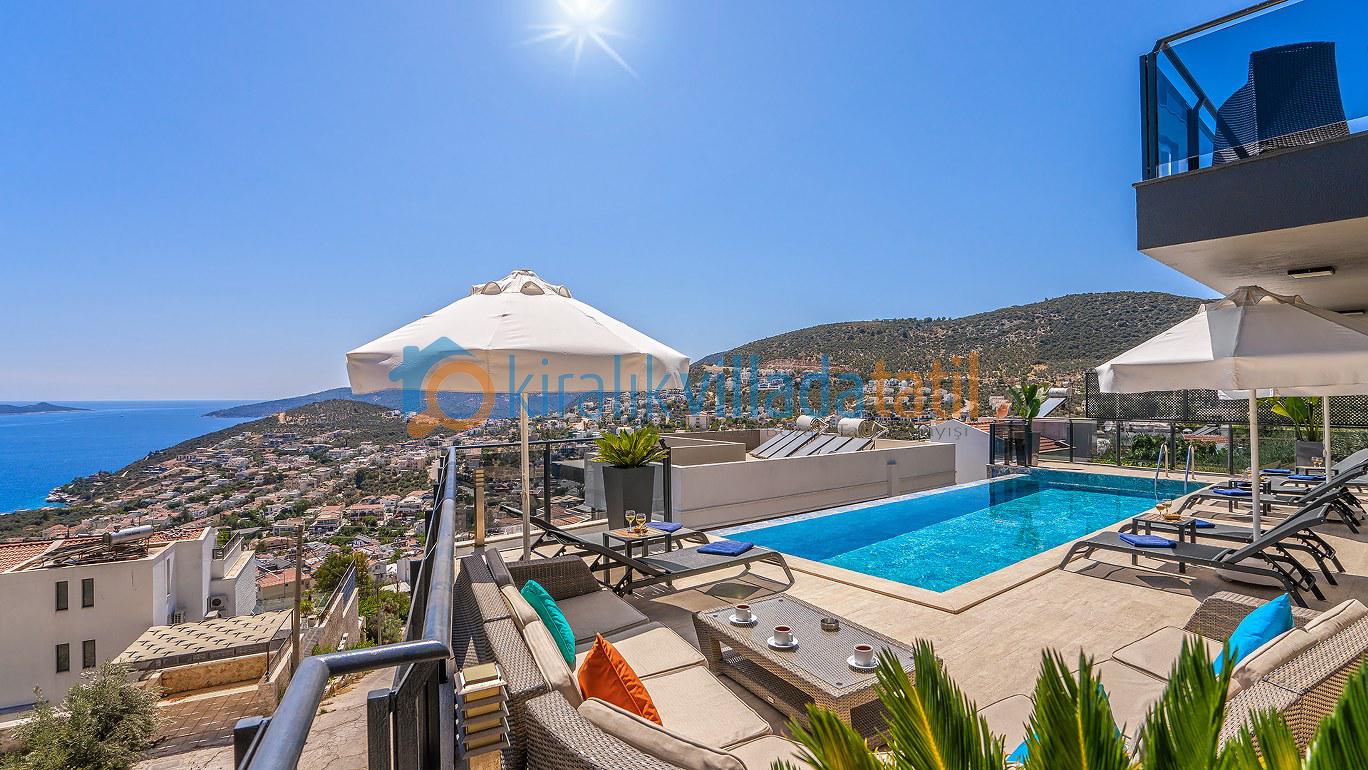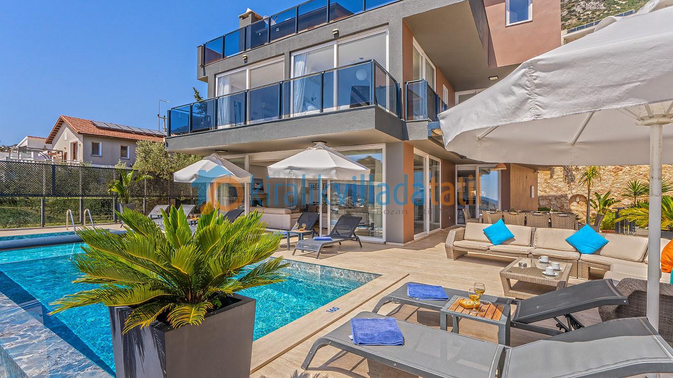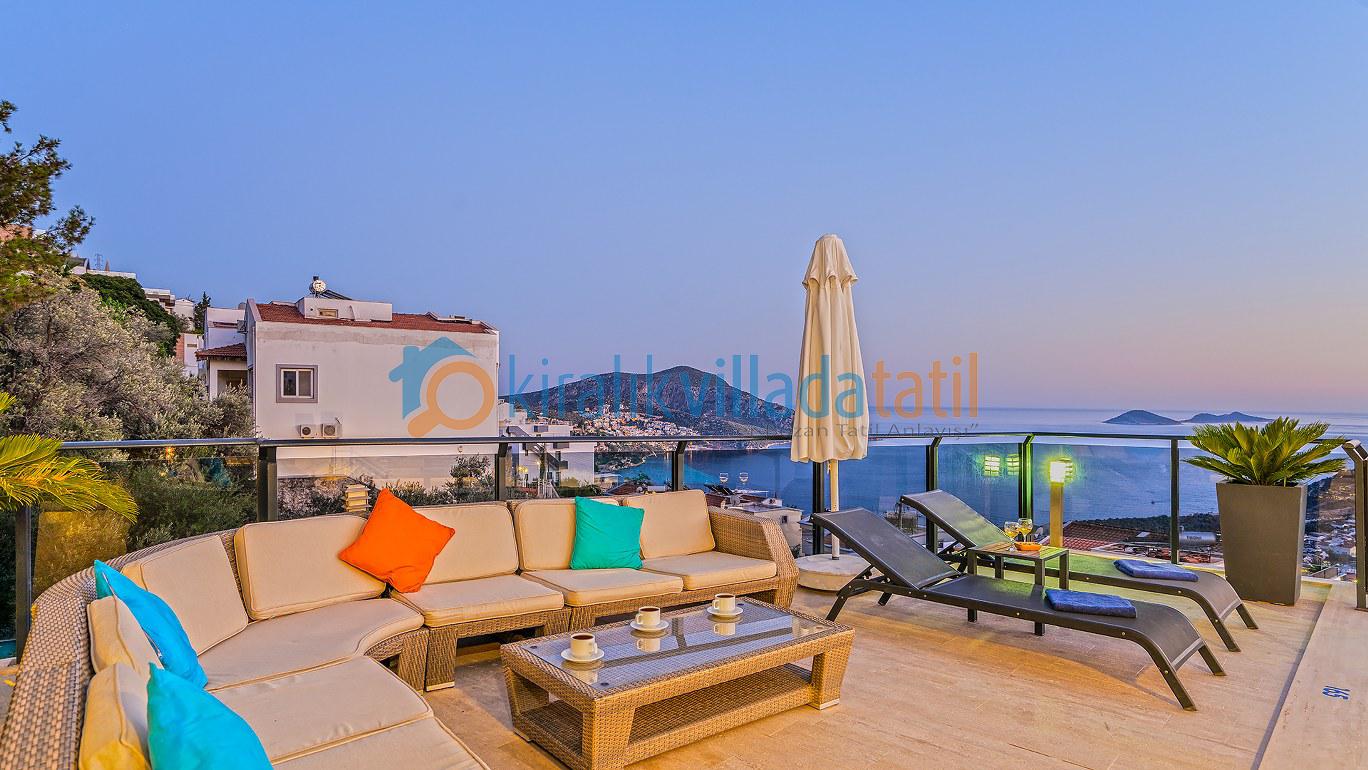 Bu ilan ait Detaylı açıklama ve bilinmesi gereken detaylarYaz tatilinin vazgeçilmez noktalarından biri olan kesintisiz deniz manzarası ve doğasıyla tatil severleri cezbeden Kalkan beldesinin Kızıltaş mevkiinde konumlanmıştır. Muhteşem deniz manzarasının yanında sade ve şık tasarımıyla da dikkat çeken Villamız, beş yatak odasıyla on kişilik konaklama kapasitesine sahiptir. Kalabalık aileler ve arkadaş grupları için son derece idealdir. Misafirlerinin her türlü konfor ihtiyacı gözetilerek dekore edilmiş olan villada ayrıca keyifli vakit geçirebilmeniz için masa tenisi, langırt ve koşu bandı gibi oyun ve spor mateyallerinin bulunduğu oyun odasına da yer verilmiştir.