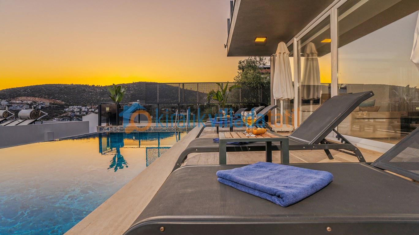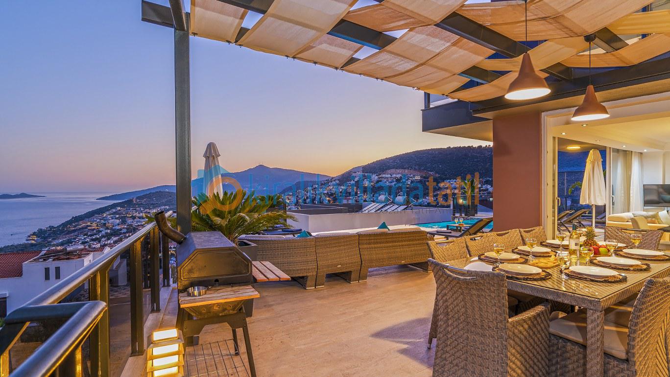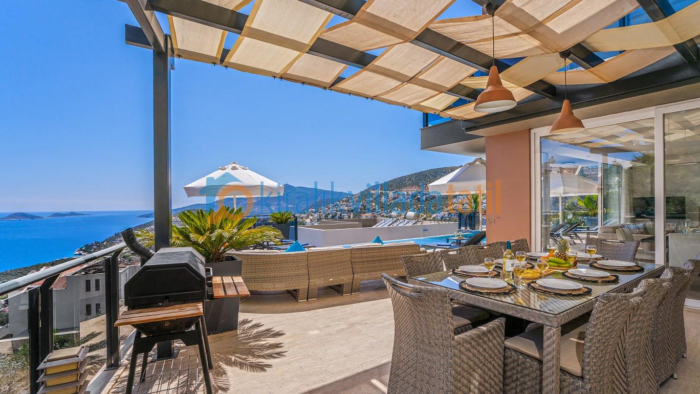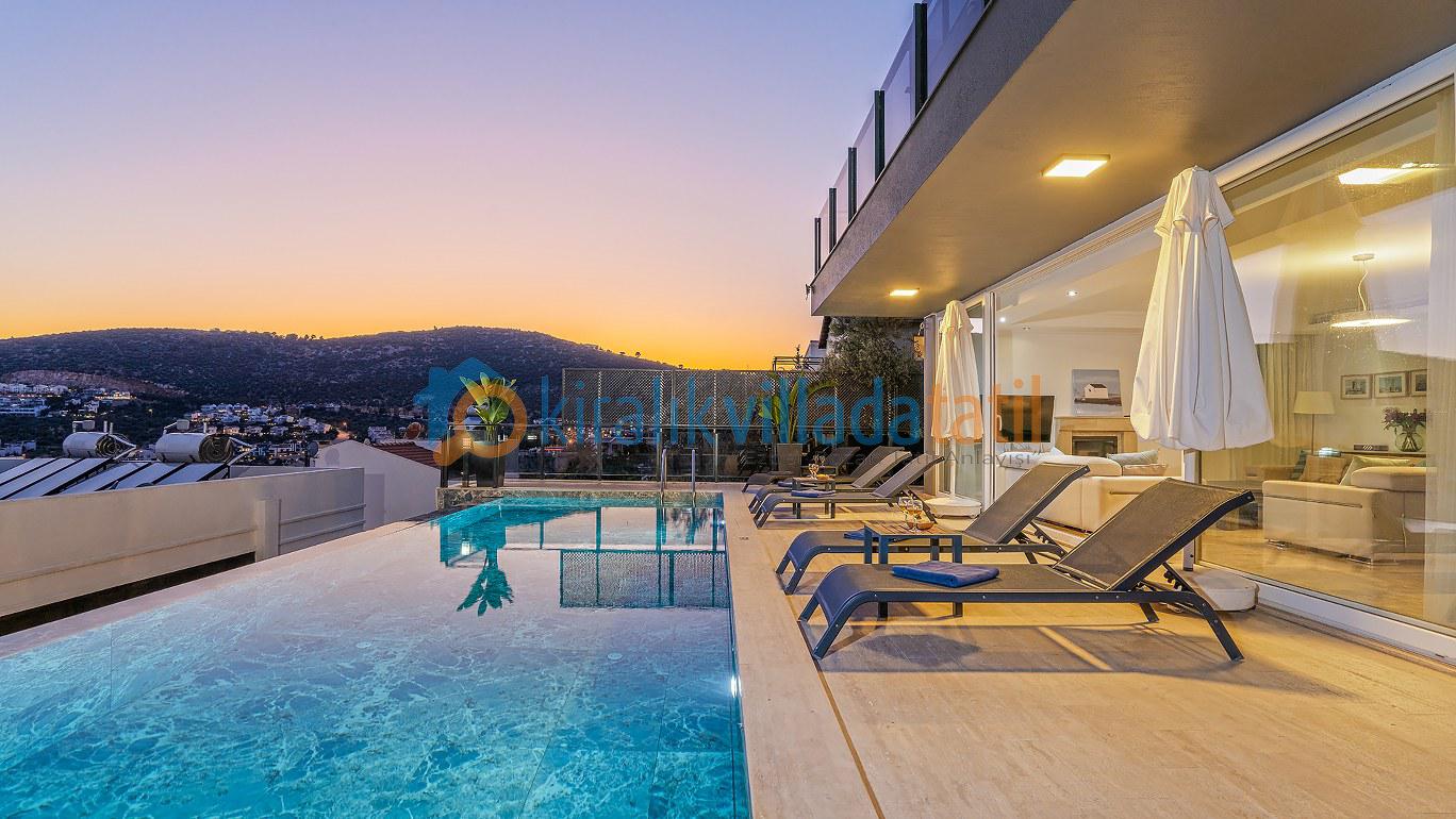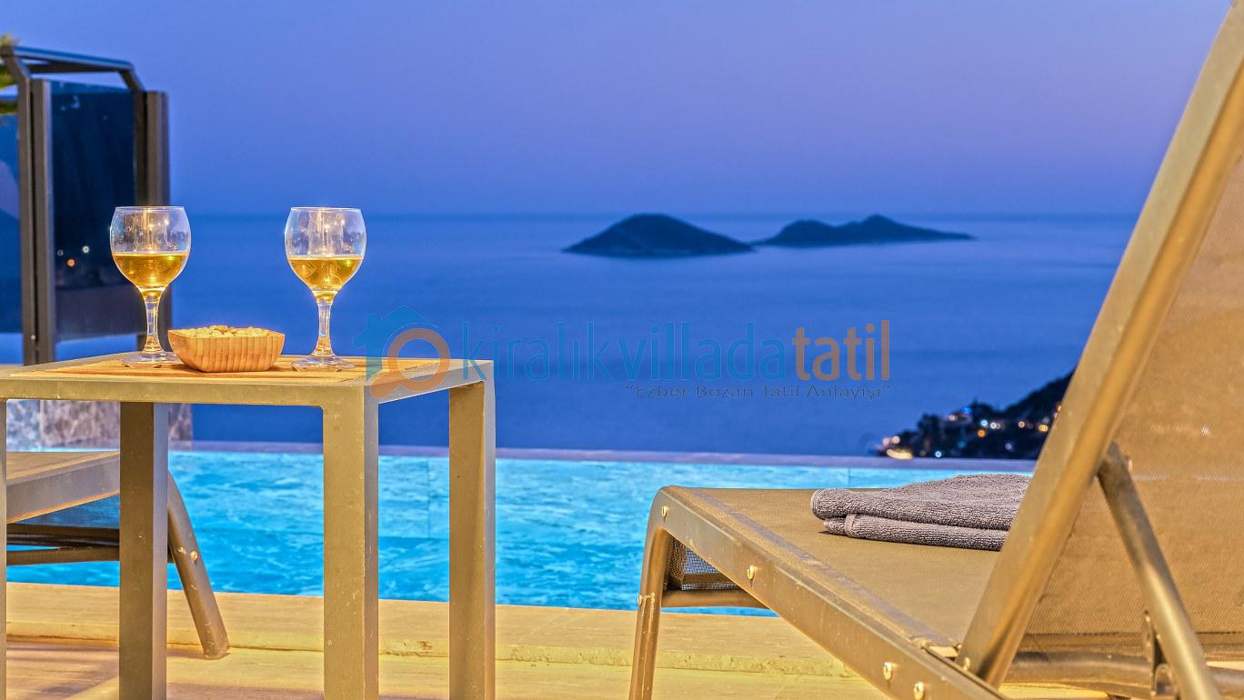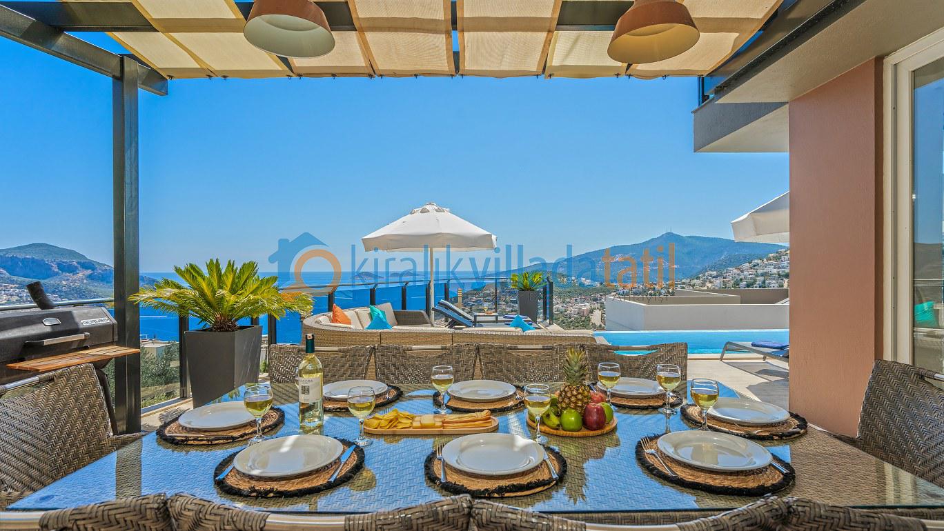 Bu ilan ait Detaylı açıklama ve bilinmesi gereken detaylarYaz tatilinin vazgeçilmez noktalarından biri olan kesintisiz deniz manzarası ve doğasıyla tatil severleri cezbeden Kalkan beldesinin Kızıltaş mevkiinde konumlanmıştır. Muhteşem deniz manzarasının yanında sade ve şık tasarımıyla da dikkat çeken Villamız, beş yatak odasıyla on kişilik konaklama kapasitesine sahiptir. Kalabalık aileler ve arkadaş grupları için son derece idealdir. Misafirlerinin her türlü konfor ihtiyacı gözetilerek dekore edilmiş olan villada ayrıca keyifli vakit geçirebilmeniz için masa tenisi, langırt ve koşu bandı gibi oyun ve spor mateyallerinin bulunduğu oyun odasına da yer verilmiştir.