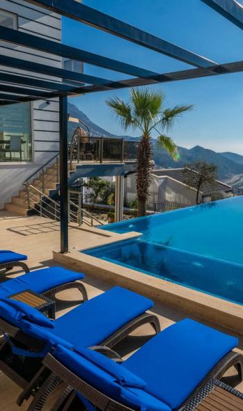 İç mekân tasarımı modern çizgilerle dekore edilmiş olan villamız, misafirlerimizin konforunu ön planda tutan detaylarla donatılmıştır. Tam donanımlı mutfak, geniş oturma odası ve ferah yatak odaları, tatil boyunca ihtiyaç duyabileceğiniz her türlü konforu sağlamaktadır. Ayrıca, havuz terasında yer alan şezlonglar ve oturma alanları, günün her saatinde manzaranın tadını çıkarabileceğiniz keyifli bir ortam sunmaktadır.
