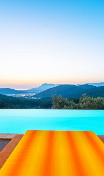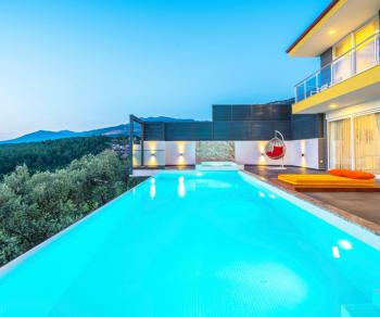 Geniş havuz terasında doğa manzarasının keyfini çıkarabilir ve villaya özel olarak tasarlanmış büyük yüzme havuzunda serinleyebilirsiniz. Havuz alanına entegre edilmiş hidromasajlı jakuzi, tatilinize hem rahatlatıcı hem de lüks bir dokunuş katar. Ayrıca havuz terasında yer alan özel yapım yatak, güneşin ve manzaranın tadını doyasıya çıkarmanız için özenle hazırlanmıştır.