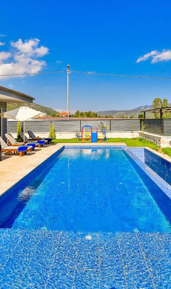 Villamızın geniş bahçesi, doğanın huzuruyla dolu atmosferini deneyimlemek isteyen misafirler için. Bahçede yer alan oturma alanları, ayrılık köşesi ve güneşlenme yatakları, tatilinize keyif katan detaylar arasında yer almaktadır. Çocuklar için oyun oynayabilecekleri güvenli bir alan sunan bahçe, aynı zamanda yetişkinlerin de açık havada vakit geçirmesi için harika bir seçenek sunuyor.