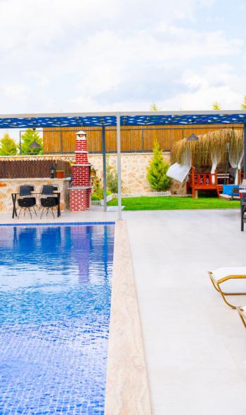 Sarıbelen uzun huzur dolu atmosferinde konumlanan bu villa, aynı zamanda Kalkan merkeze ve çevredeki cazibe noktalarına kolay erişim imkanı sunmaktadır. Villamız, hem dinlenme hem de eğlenceli aktivitelerle dolu bir tatil geçirmek isteyen misafirler için mükemmel bir tercihtir. Doğa ile iç içe, modern lüks ve bir konaklamayı yaşayan vatandaşlarımız bu özel villamızda ağırlamaktan mutluluk duyarız.