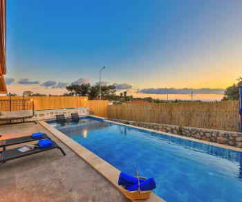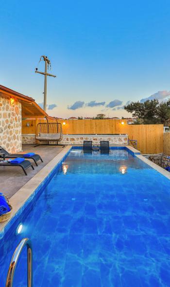 Villamızın özel korunaklı havuzu, dışarıdan herhangi bir şekilde görünmemektedir, bu da villa sahiplerine tam bir gizlilik ve rahatlık sağlar. Hem balayı çiftleri hem de muhafazakâr aileler için en uygun seçeneklerden biridir. Villa, huzurlu bir tatil geçirebileceğiniz, sessiz ve sakin bir atmosferde konforlu bir konaklama deneyimi sunar.