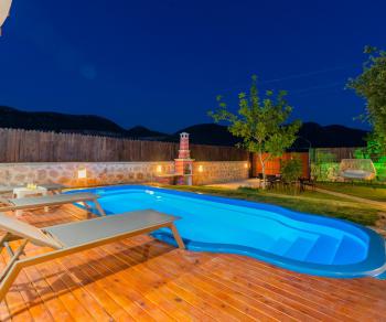 Villanın geniş bahçe alanı, misafirlere ferah bir ortam sağlamanın yanı sıra keyifli vakit geçirmek için mükemmel bir atmosfer yaratır. Bahçede yer alan özel yüzme havuzu, gün boyunca serinleyip güneşin tadını çıkarabileceğiniz bir alandır. Ayrıca, havuz başındaki oturma grupları ve şezlonglar, dinlenmek ve sevdiklerinizle sohbet etmek için idealdir.