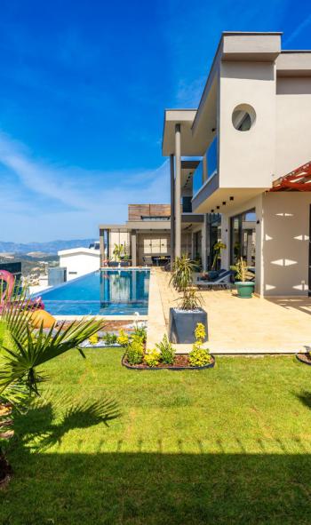 Villamızın tüm odaları, doğanın ve denizin büyüleyici manzarasını doğrudan görebileceğiniz bir konumda yer almaktadır. Modern ve özenli bir şekilde dizayn edilen iç mekân, konforu ve şıklığı bir araya getiren özel detaylarla zenginleştirilmiştir. Ayrıca villamız, konum itibariyle havuz terası kısmi korunaklı olduğu için mahremiyet arayan muhafazakâr ailelerin de tercih edebileceği niteliktedir.