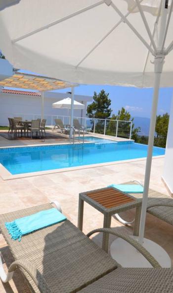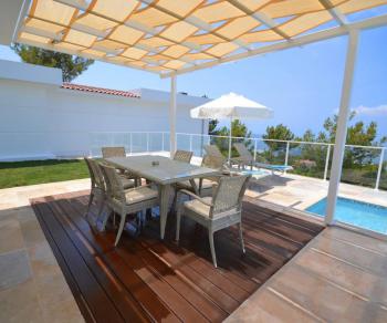 Villanın modern tasarımı, konfor ve şıklığı bir araya getirerek misafirlerine keyif dolu bir tatil imkanı sunar. Geniş ve donanımlı mutfağı, sevdiklerinizle hazırlayacağınız lezzetli yemekler için ideal bir ortam yaratırken, geniş terası ise kahvaltılardan akşam yemeklerine kadar doğanın tadını çıkarabileceğiniz bir alan sunmaktadır. Havuz başında güneşlenerek dinlenebilir ya da serin sularda keyifli bir gün geçirebilirsiniz.