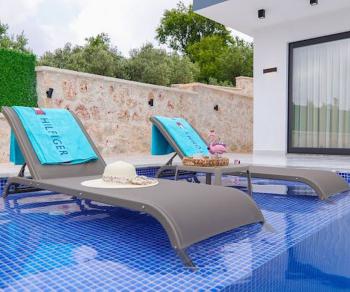 Villanın havuz terası ve bahçesi, çocuklarınız için güvenli ve eğlenceli bir oyun alanı sağlar. Bu özel villa, tatilinizi unutulmaz kılmak için özenle tasarlanmıştır ve çevresindeki doğal güzelliklerle çevrili olan Kaş'ın huzur dolu atmosferini sunar. Mutfak: eksiksiz bir şekilde tasarlanmış Amerikan mutfağı, buzdolabı, bulaşık makinesi, ocak, fırın, su ısıtıcısı, 6 kişilik yemek masası, yemek takımı, çatal bıçak takımı, bardaklar ve mutfak ekipmanları gibi tüm ihtiyaçlarınıza cevap verir.