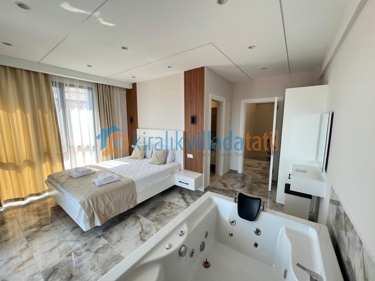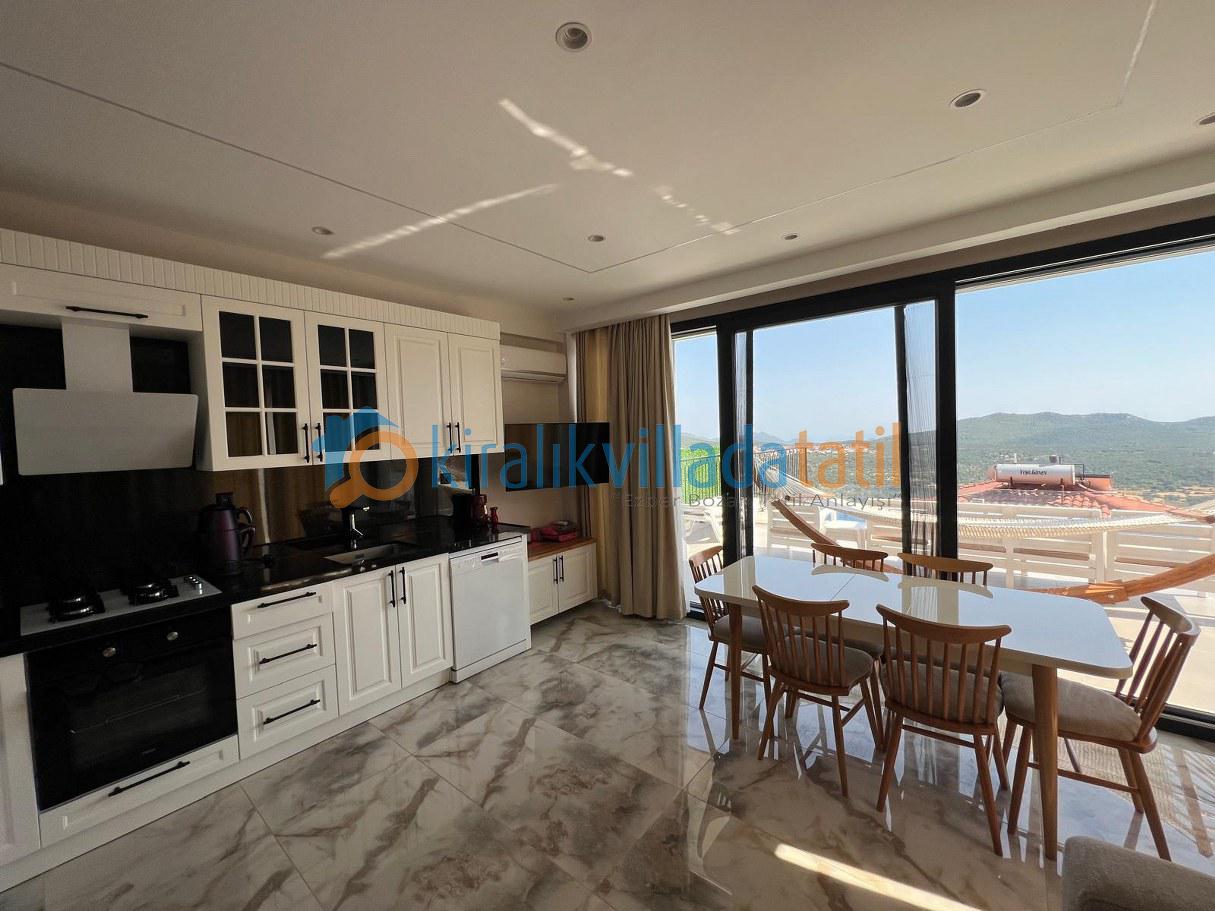 Aileler ve arkadaş grupları için uygun olan bu villa, huzurlu bir tatil atmosferi vadeder. Villanın iç tasarımında ferahlık ve kullanım kolaylığı ön planda tutulmuştur. Geniş salon alanı, modern ve konforlu mobilyalarla döşenmiş olup tatil süresince keyifli vakit geçirmenize olanak tanır. Açık plan mutfak bölümü, günlük ihtiyaçlarınızı karşılayacak tüm mutfak ekipmanlarıyla donatılmıştır.