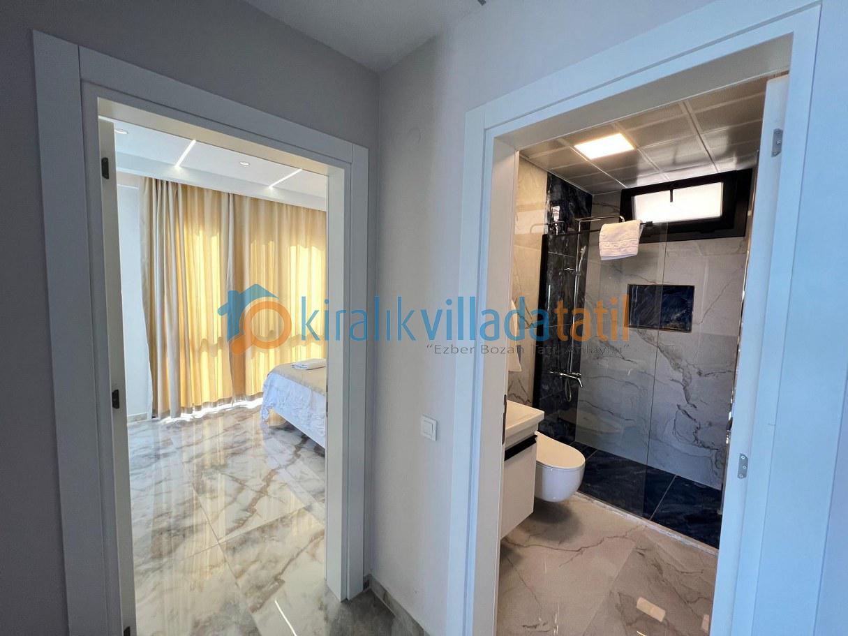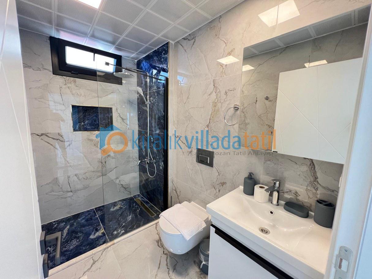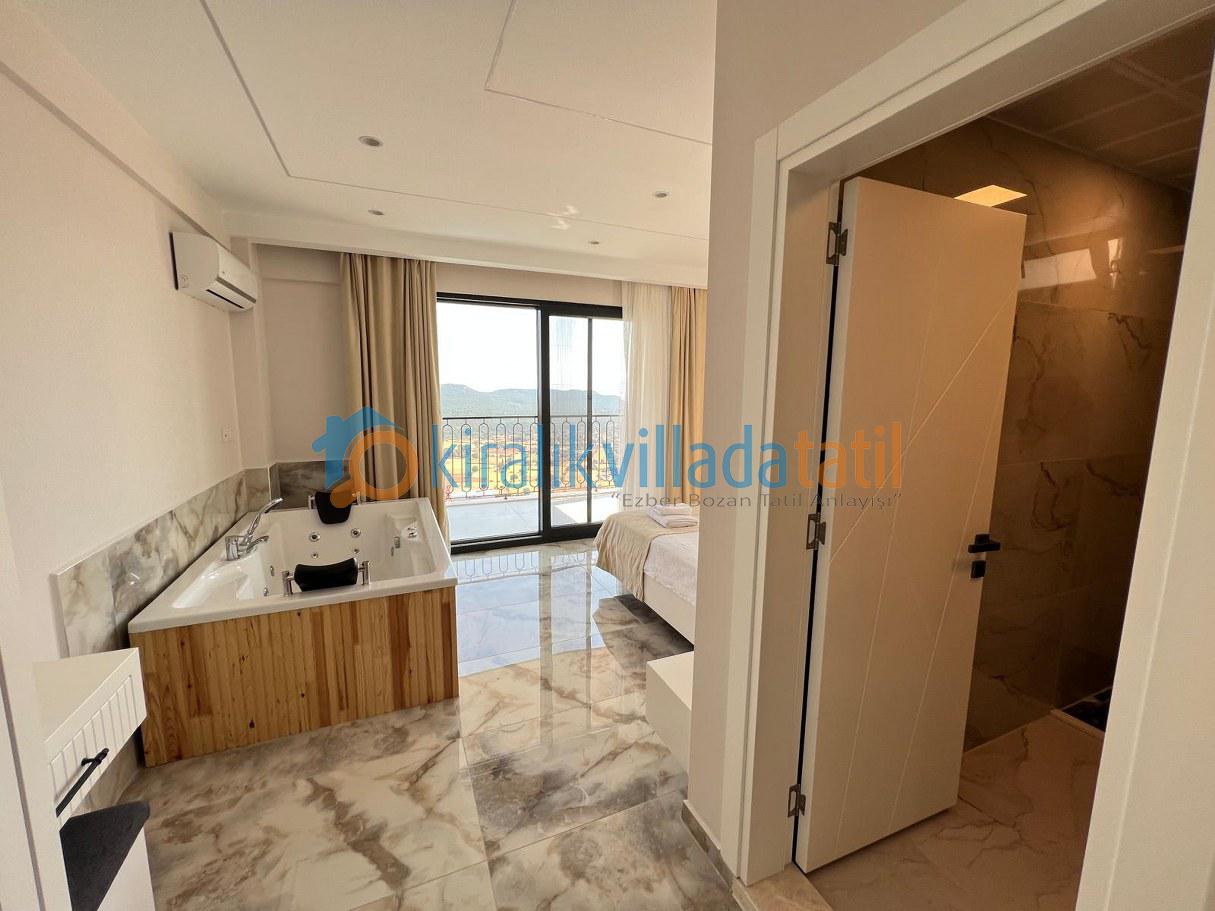 Bu alanlar, hem birlikte vakit geçirmek hem de rahat bir tatil deneyimi yaşamak isteyen misafirler için ideal bir kullanım sunar. Yatak odalarının her biri, misafirlerin dinlenme konforu düşünülerek özenle hazırlanmıştır. Doğa manzarasına açılan odalar, sakin bir ortamda uyku ve dinlenme imkânı sunarken; Kaş’ın temiz havası tatilinize huzur katar. Villanın genelinde kullanılan modern detaylar, konaklama süresince konforlu bir atmosfer oluşturur.