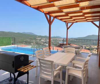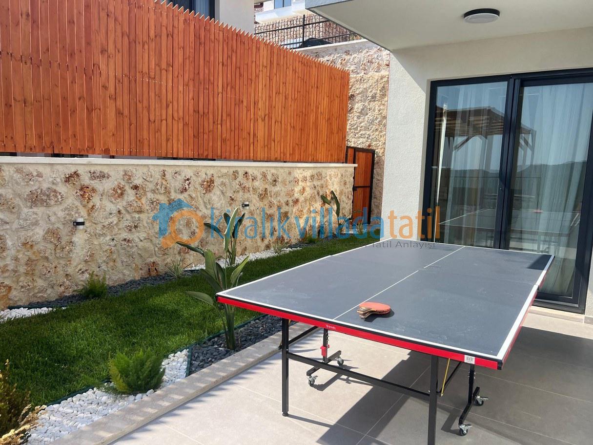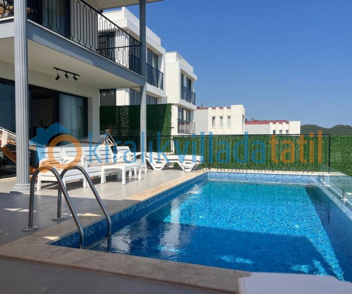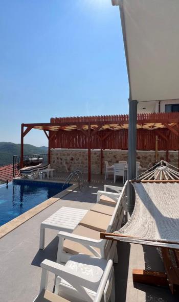 Doğa manzarasına açılan alanlar sayesinde sabahları kuş sesleri eşliğinde uyanabilir, günün yorgunluğunu sakin bir atmosferde geride bırakabilirsiniz. Villamızın doğa manzaralı yapısı, şehir kalabalığından ve gürültüsünden uzak, huzurlu bir tatil geçirmek isteyen misafirler için büyük bir avantaj sunmaktadır. Geniş bahçe ve havuz alanı, gün boyu keyifle vakit geçirmenize olanak tanırken; özel yüzme havuzu sayesinde tatiliniz boyunca serinleyebilir ve özgürce dinlenebilirsiniz. Havuz terasında yer alan şezlonglar ve oturma alanları, güneşin ve doğanın tadını çıkarmanız için ideal bir ortam sunar. Doğayla iç içe konumu sayesinde Villamızda yılın stresini geride bırakmak, sevdiklerinizle birlikte kaliteli ve keyifli zaman geçirmek isteyen misafirler için oldukça uygun bir seçenektir. Hem huzurlu hem de eğlenceli bir tatil arayan misafirler için tasarlanan villamız, Kaş'ta kiralık villa arayanlar doğal güzellikleriyle birleşerek unutulmaz bir tatil deneyimi sunar.