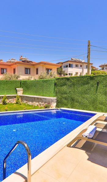 Açık havuz, müşterilerin güneşli günlerin tadını çıkarabilmeleri için mükemmel bir olanak sunuyor. Aynı zamanda villanın çevresindeki yer alan doğal bitki örtüsü, misafirlere sakin ve huzurlu bir atmosfer sağlar. Geniş bahçe alanı, misafirlere hem çocuklarıyla hem de arkadaşlarıyla keyifli zaman geçirme fırsatı tanır. Şezlonglarla donatılmış havuzun başında dinlenebilir, açık havada yaparak tatilinize lezzet katabilirsiniz.