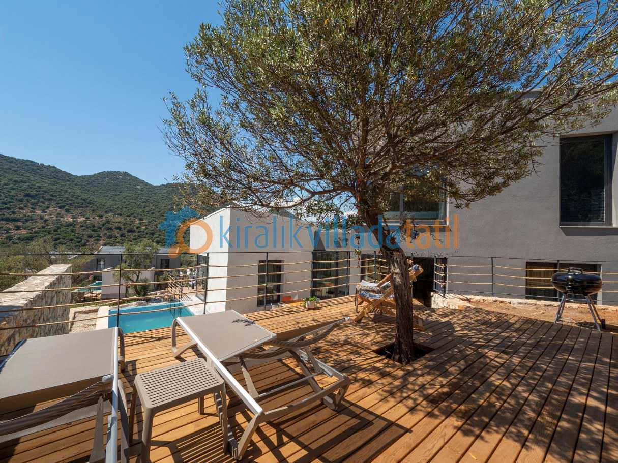 Tamamen size ait olan havuz terası; özel yüzme havuzu, güneşlenme alanı, konforlu bahçe oturma grubu, yemek masası ve salıncak köşesiyle tatilin en özel anlarına ev sahipliği yapar. Sabah saatlerinde doğanın dinginliğinde kahvaltınızı yapabilir, akşamları ise gün batımının eşsiz renkleri eşliğinde sevdiklerinizle uzun ve keyifli sofralar kurabilirsiniz.