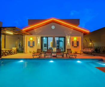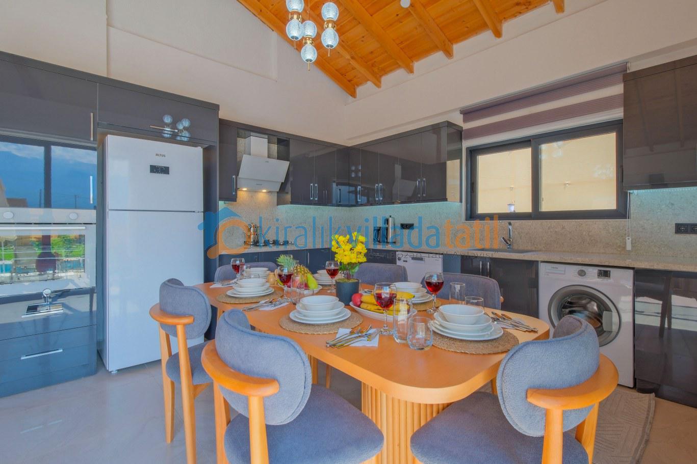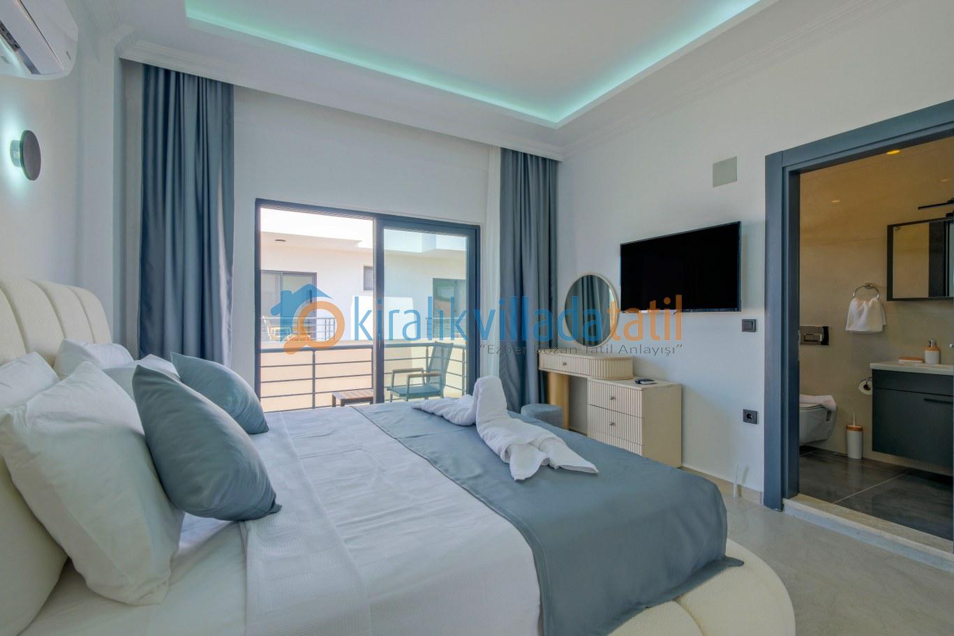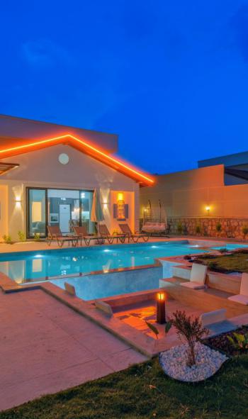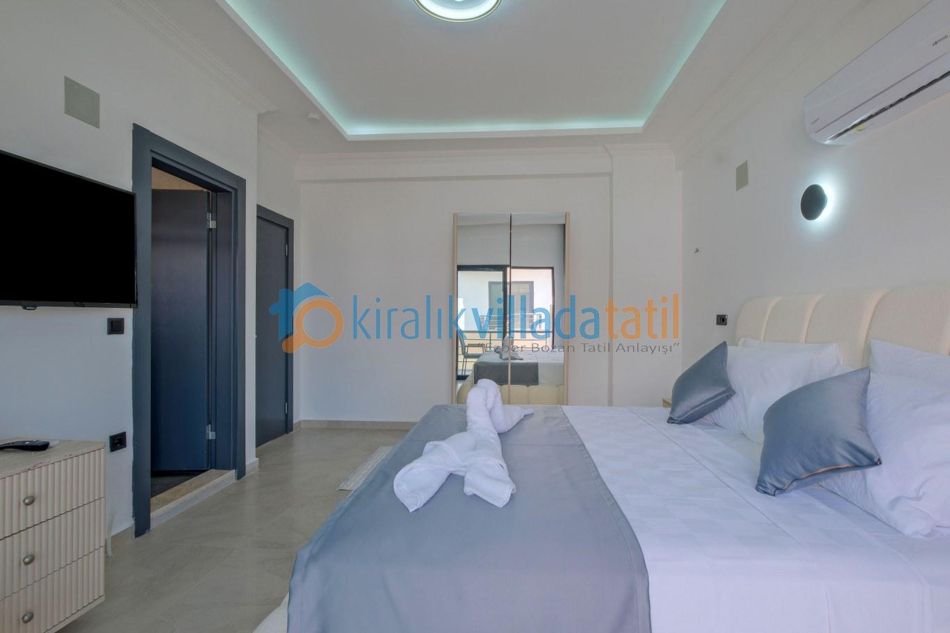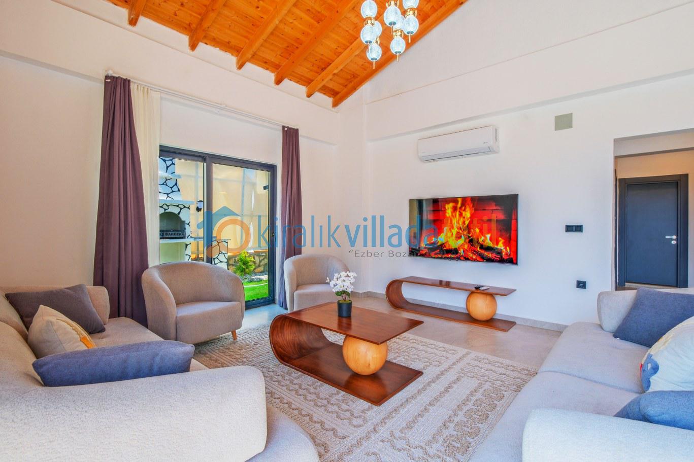 Modern ve kullanışlı detaylarla tasarlanan iç mekân; ferah bir salon, tam donanımlı mutfak, rahat yatak odaları ve ihtiyaç duyabileceğiniz tüm temel ekipmanları barındırmaktadır. Sekiz kişilik konaklama kapasitesiyle hem kısa süreli konaklamalarda hem de uzun tatil planlarında yüksek konfor sunan bu kiralık villa, ev rahatlığını tatil konseptiyle birleştirir.