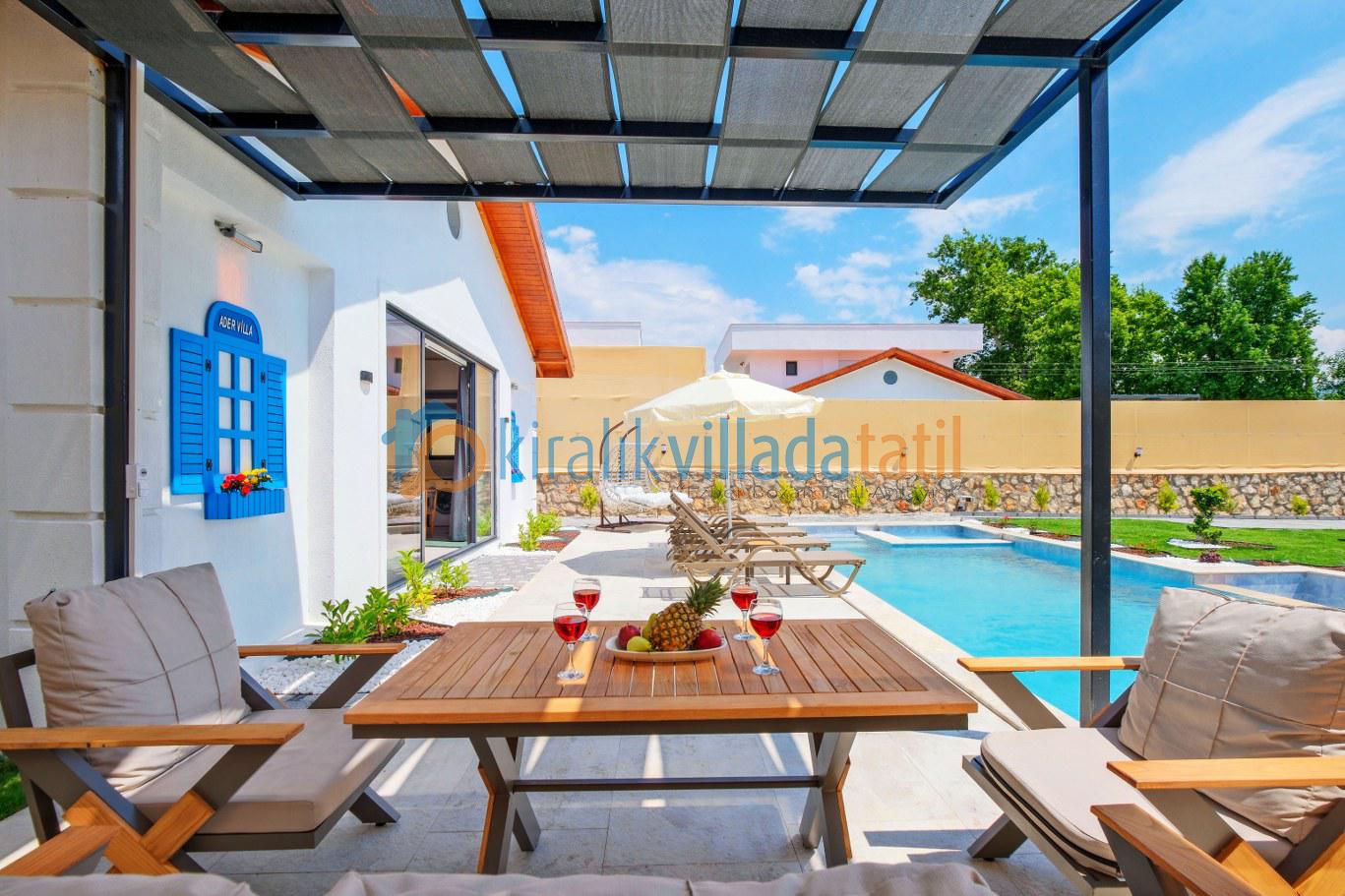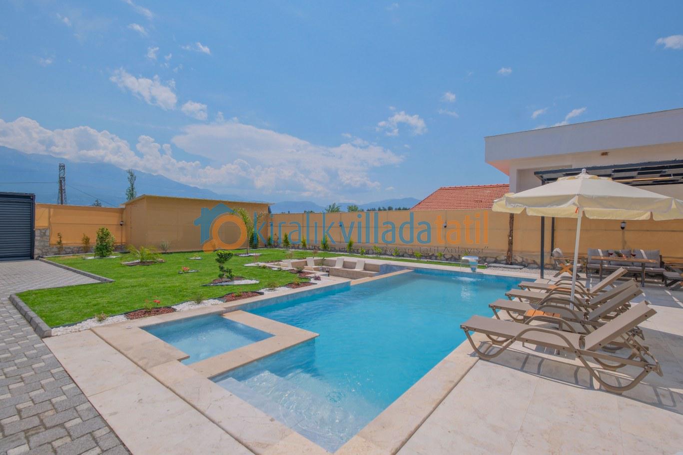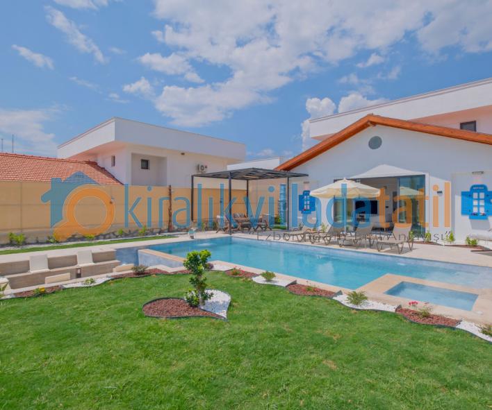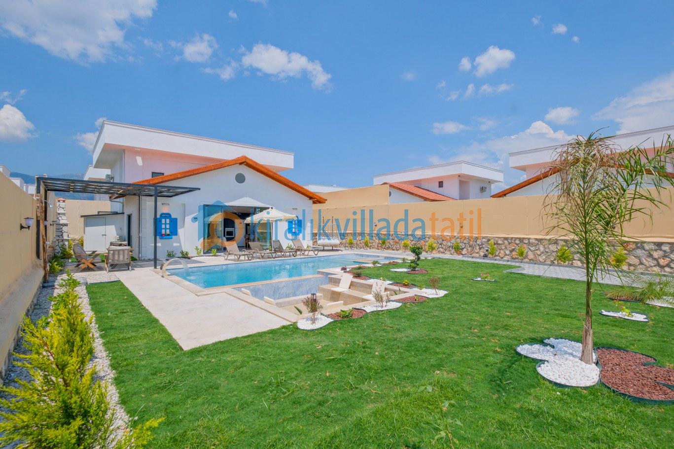 Her biri modern mimari anlayışıyla tasarlanan kiralık villalarda özel yüzme havuzu, geniş bahçe, şezlong alanları, açık hava yemek masası ve keyifli oturma köşeleri yer alır. Günün büyük bölümünü vakit geçirebileceğiniz bu dış mekânlar, tatilinizi klasik konaklama anlayışının ötesine taşıyarak size tamamen size ait bir yaşam alanı sunar. Geniş ve bakımlı bahçeler, özellikle çocuklu aileler ve doğa içinde tatil yapmak isteyen misafirler için önemli bir avantaj oluşturur.
