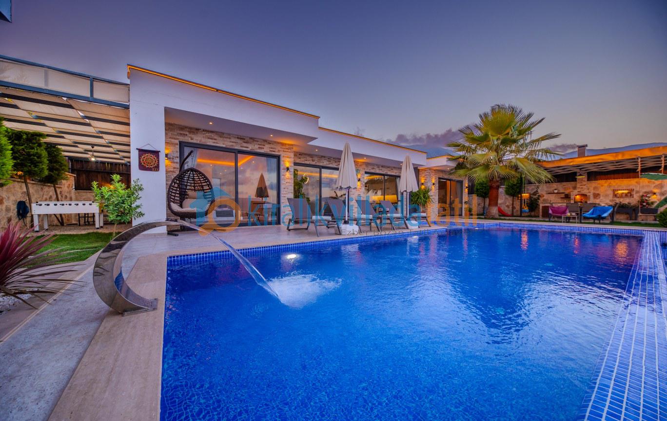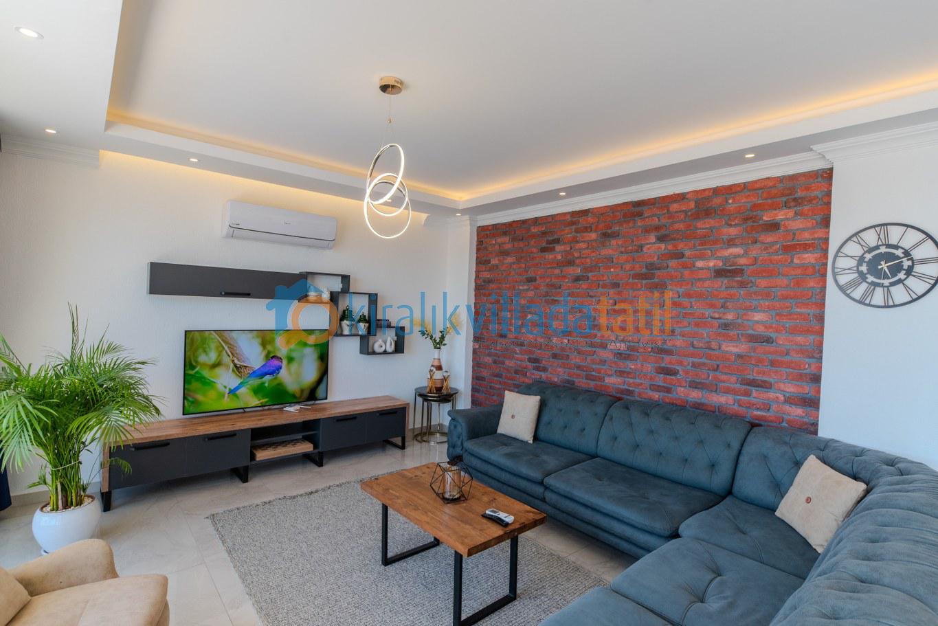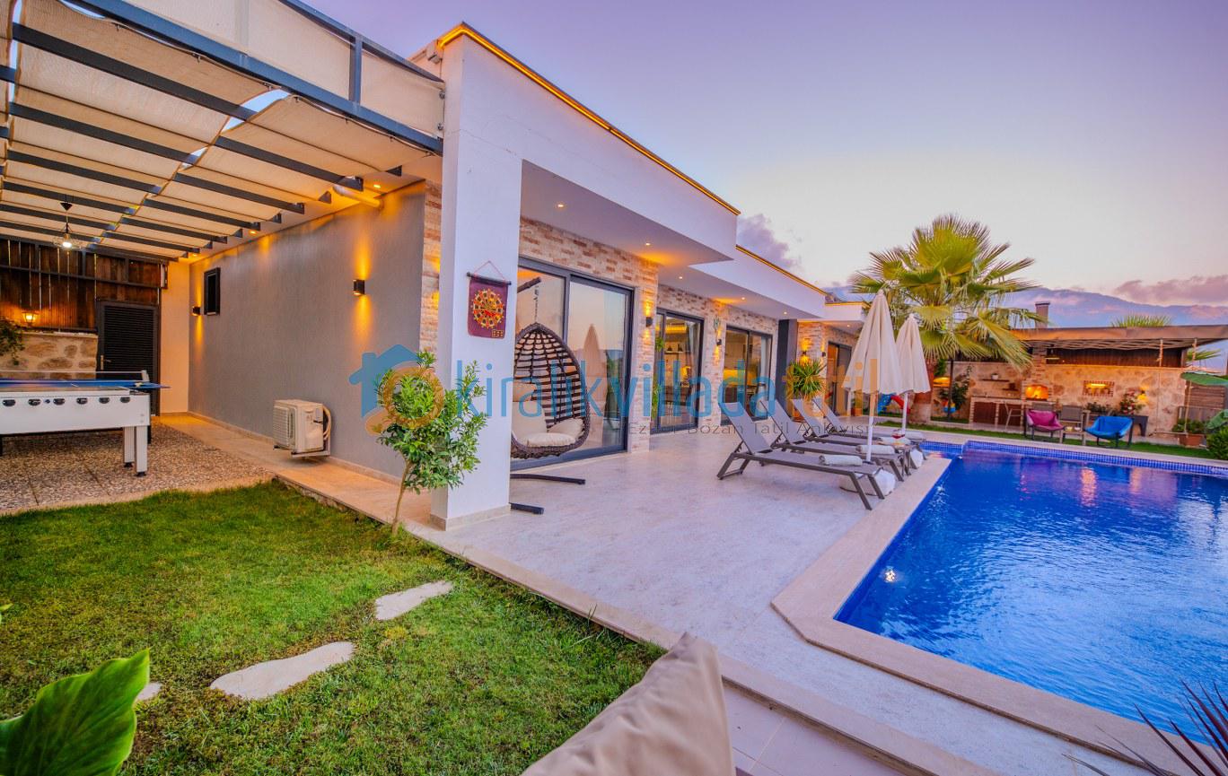 Bu ilan ait Detaylı açıklama ve bilinmesi gereken detaylarKaş Çavdır mevkiinde, doğanın huzurlu atmosferi içinde konumlanan bu modern villa; konforlu detayları ve fonksiyonel yaşam alanlarıyla ayrıcalıklı bir tatil deneyimi sunuyor. 2 yatak odası ve 5 kişilik kapasitesisayesinde hem çekirdek aileler hem de romantik bir kaçamak planlayan balayı çiftleri için ideal bir konaklama alternatifi oluşturuyor. İç mekânda tercih edilen kaliteli ve rahat ev eşyaları, modern mimari çizgilerle birleşerek ferah ve keyifli bir ortam sağlıyor.
