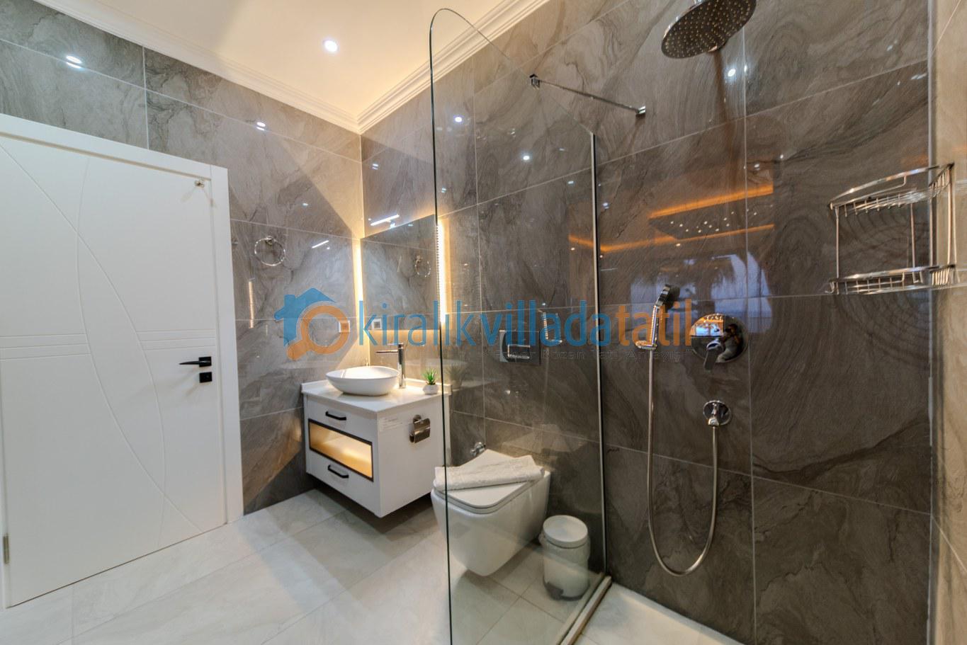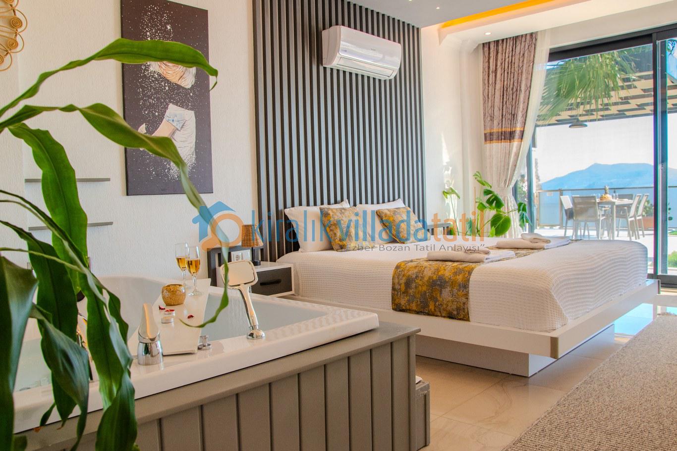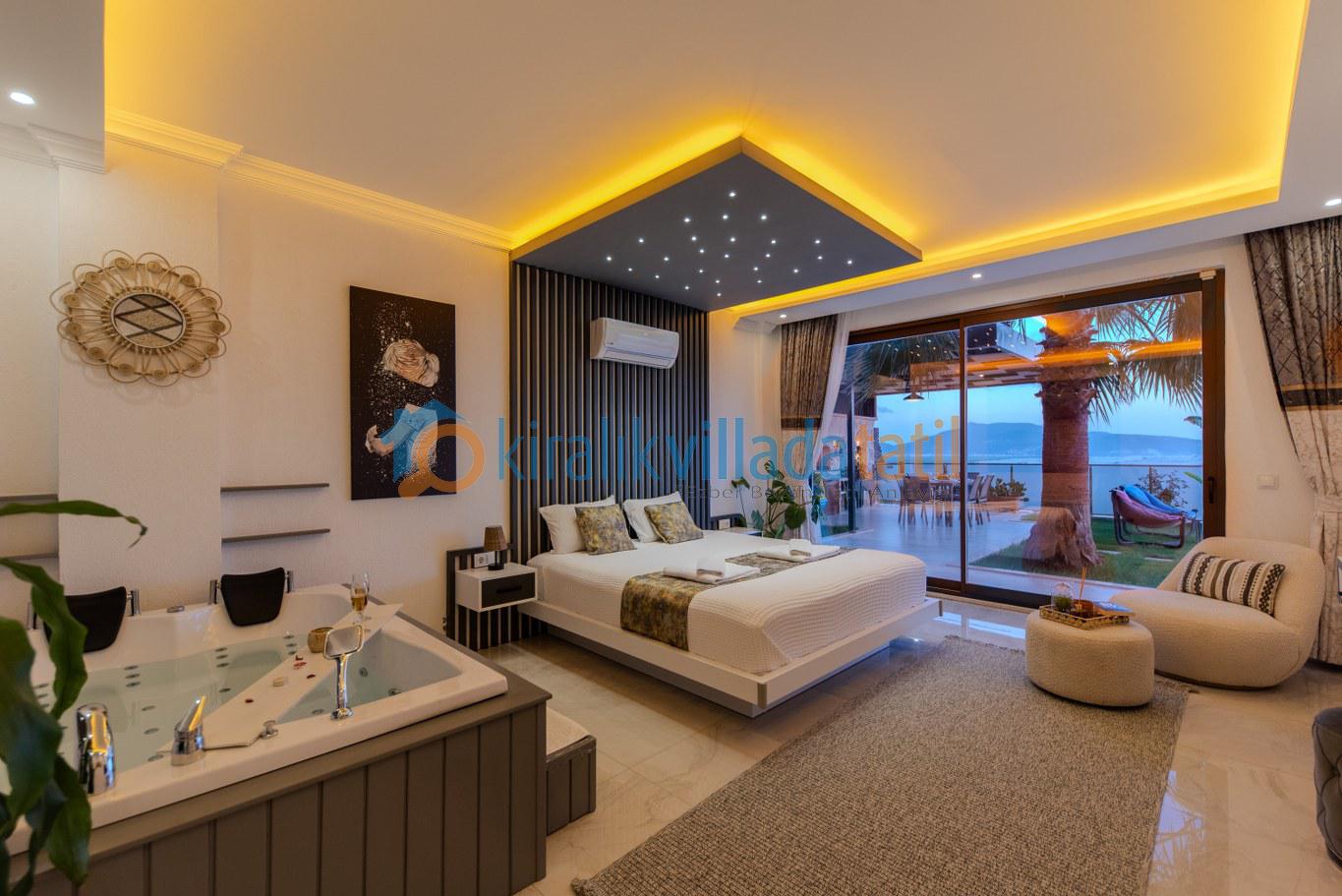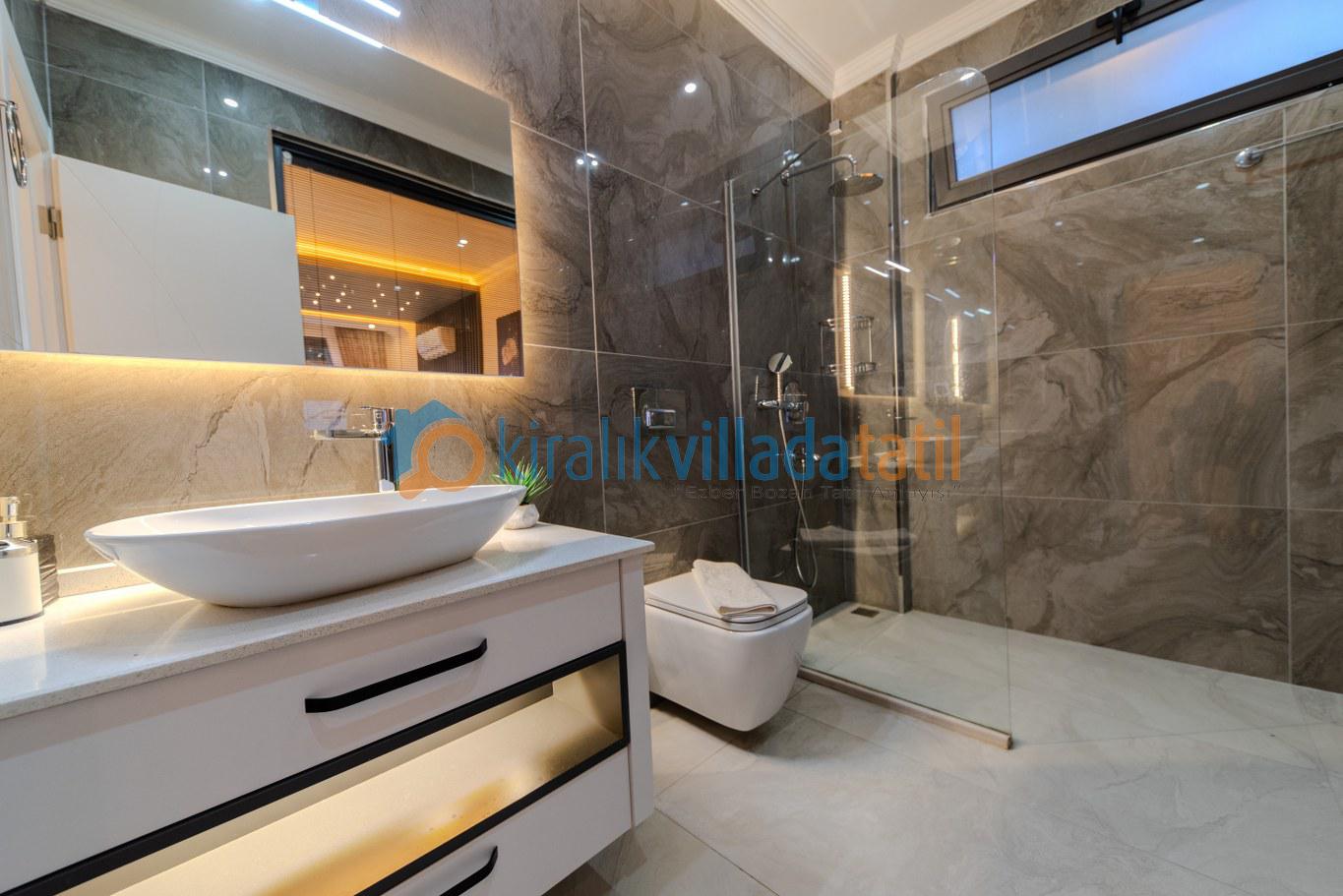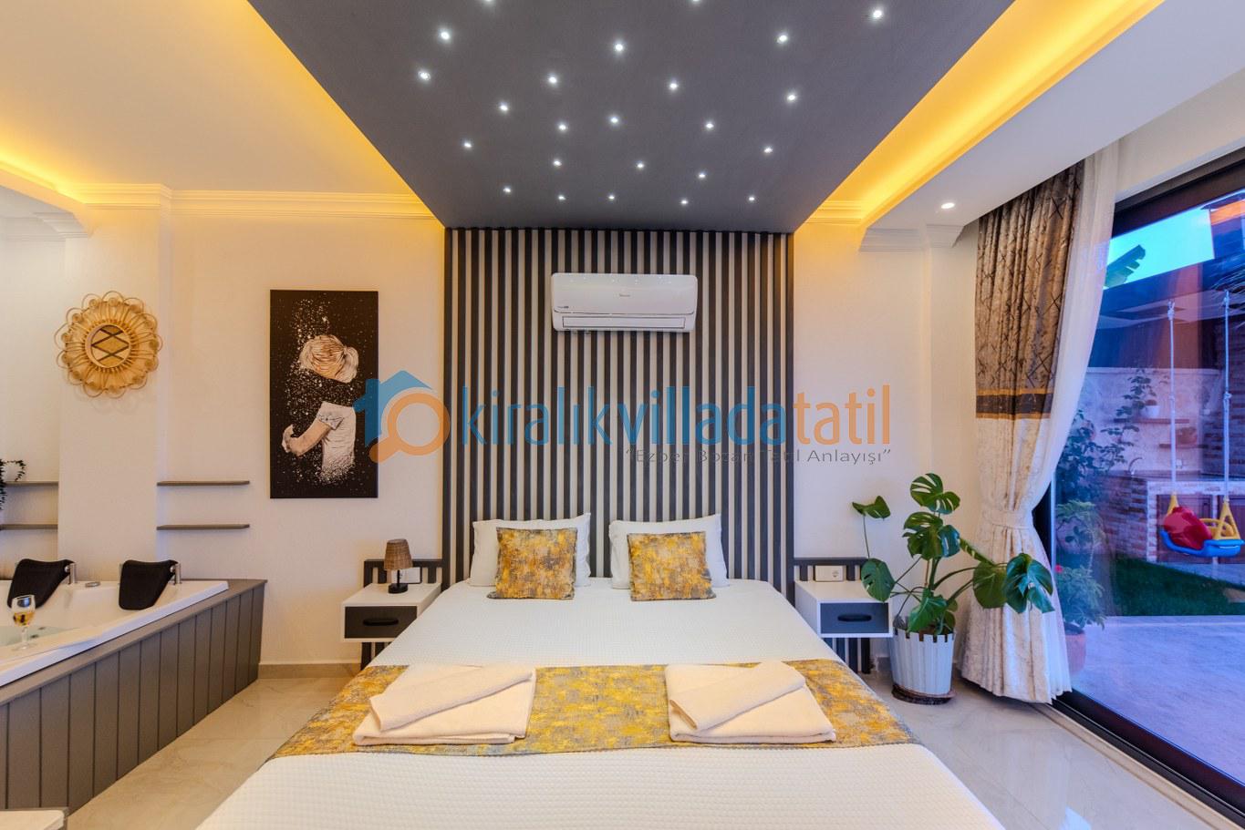 Yatak odasında bulunanjakuzi ve sauna ise villaya ekstra bir konfor katıyor. Günün yorgunluğunu jakuzide atabilir, saunada rahatlayarak tatilinize küçük bir spa dokunuşu ekleyebilirsiniz. Havuz alanının korunaklı yapısı sayesinde dışarıdan görünmeden rahatça vakit geçirebilir, özellikle muhafazakâr misafirler için güvenli ve konforlu bir kullanım elde edebilirsiniz.