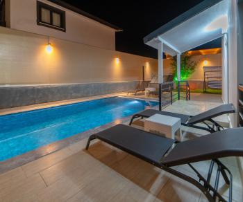 Villanın açık alanlarında ise özel yüzme havuzunun çevresinde sevdiklerinizle vakit geçirebileceğiniz geniş oturma ve güneşlenme alanları bulunmaktadır. Doğanın kucağında konumlanan bu villa, huzurlu bir atmosferde vakit geçirmek isteyenler için birebirdir.
