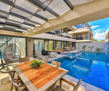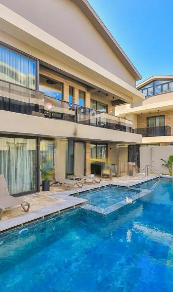 Bu ilan ait Detaylı açıklama ve bilinmesi gereken detaylarVillamız, şehir merkezine, denize, eğlence ve spor alanlarına kolay erişim sağlayan ayrıcalıklı konumuyla dikkat çekmektedir. Dört suit odadan oluşan villada, iki odada çift kişilik jakuzi bulunurken; ayrıca hamam ve sauna gibi rahatlatıcı alanlara da yer verilmiştir. Merkezi konumu sayesinde tatiliniz boyunca tüm olanaklara yakın olmanın keyfini çıkarabilir, aynı zamanda sahil şeridine kısa bir yürüyüşle ulaşabilirsiniz. Villamız, ayrıcalıklı bir konaklama arayan misafirlerine kapılarını sonuna kadar açmaktadır.