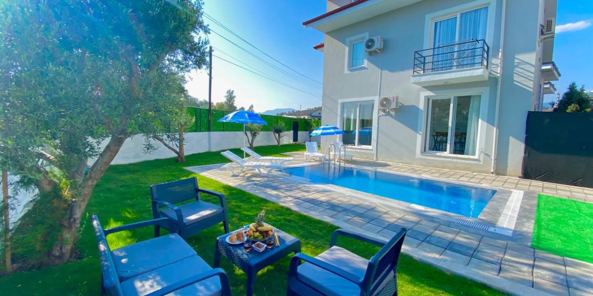 Bu ilan ait Detaylı açıklama ve bilinmesi gereken detaylarVillamız, 2 yatak odalı ve 2 wc+banyolu olup, 4 kişilik konaklama kapasitesine sahiptir. Çalış Plajı'na araçla sadece 4-5 dakika uzaklıkta bulunan bu tatil villası, geniş bir bahçe alanı, pratik bir barbekü ve ideal havuz ölçüleri (3m*5m boyutlarında ve 1.55m derinlik) ile keyifli bir tatil imkanı sunmaktadır