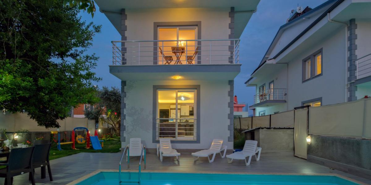 3 x 6 metre ölçülerinde ve 1.50 metre derinliğindeki özel yüzme havuzu korunaklı yapıdadır. Geniş bahçe alanında çocuklar için oyun alanı bulunmakta olup ayrıca bebek yatağı da mevcuttur. Bu yönüyle çocuklu aileler için pratik ve güvenli bir konaklama alternatifi sunmaktadır.