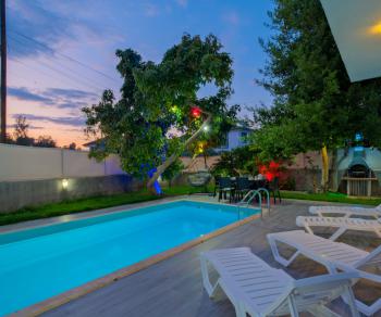 Villanın havuzu, 3*6 metre boyutlarında ve 1.50 metre derinliğindedir ve etrafı korunaklıdır. Yan tarafta bulunan diğer villa olan Elif-1 benzer özelliklere sahiptir. İsteyen misafirler, her iki villayı da aynı anda kiralayabilir ve havuz başındaki bağlantı kapısını açarak geçiş yapabilirler.