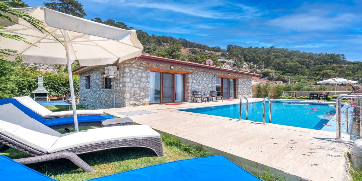 Fethiye Faralya bölgesinde yer alan bu deniz manzaralı villa, doğa içindeki konumu ve korunaklı yapısı ile deniz manzaralı villa ve korunaklı villa arayışında olan misafirler için konforlu bir kiralık villa ve villa kiralama alternatifidir.
