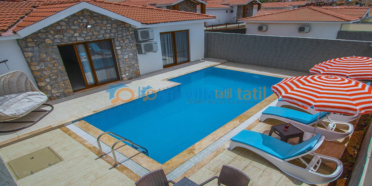 Taş ve ahşap yapıdan oluşmakta olan villamızın içerisi ultra lüks hazırlanmış olup villamız 2 oda 1 açık plan mutfak şeklinde dizayn edilmiştir. Villamızın kendine ait 40m² özel havuzu bulunmaktadır. Havuzun derinliği 1.40cm-150cm aralığında eğimlidir. Havuzumuzun etrafı branda sistemiyle kapalı olup ailenizle rahatlıkla havuz keyfi yapmanızı sağlar.