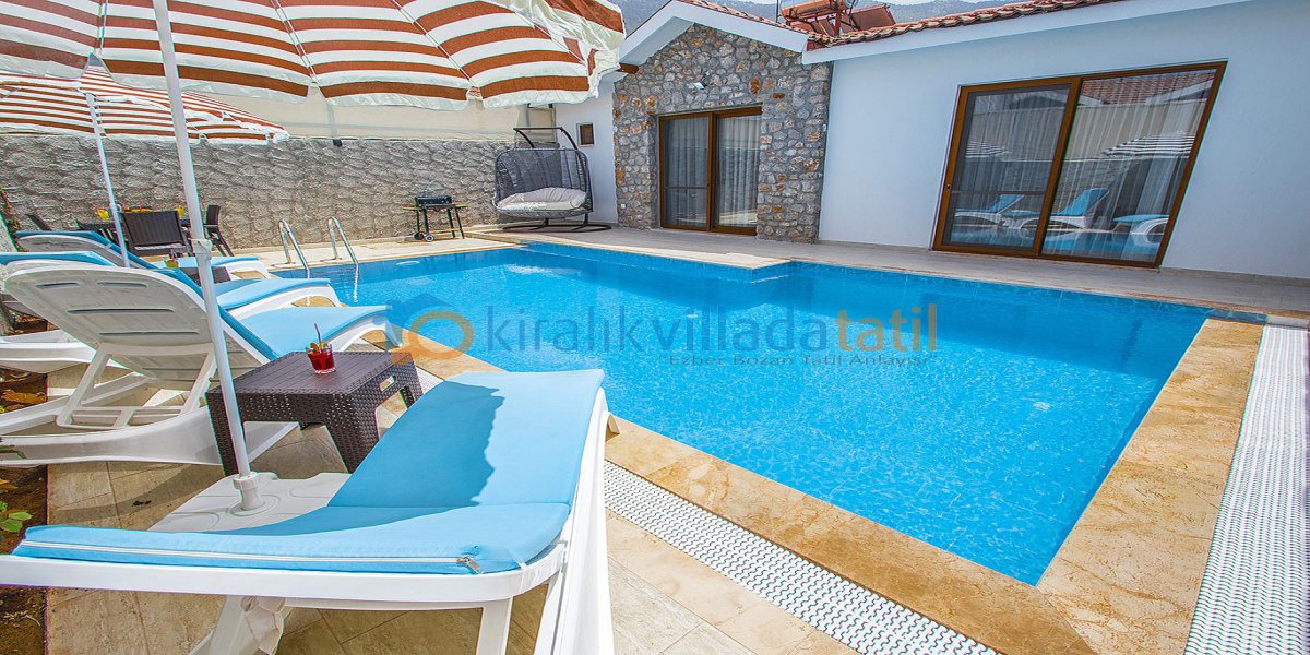 Taş ve ahşap yapıdan oluşmakta olan villamızın içerisi ultra lüks hazırlanmış olup villamız 2 oda 1 açık plan mutfak şeklinde dizayn edilmiştir. Villamızın kendine ait 40m² özel havuzu bulunmaktadır. Havuzun derinliği 1.40cm-150cm aralığında eğimlidir. Havuzumuzun etrafı branda sistemiyle kapalı olup ailenizle rahatlıkla havuz keyfi yapmanızı sağlar.